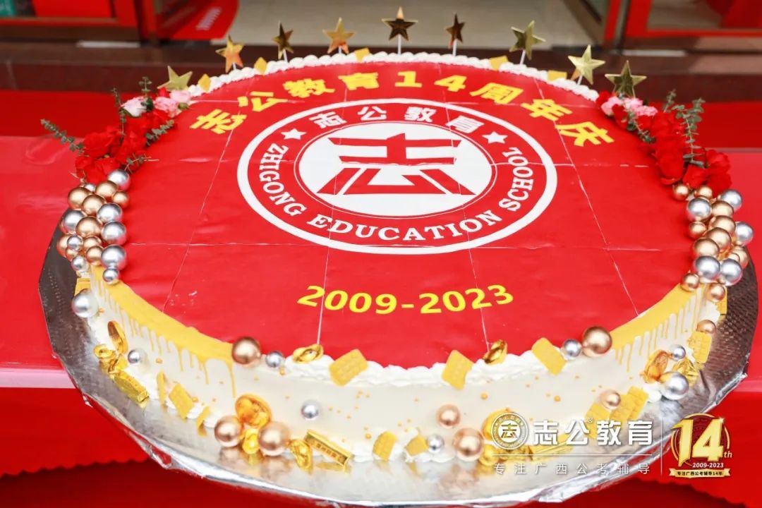 這個(gè)蛋糕不僅象征著志公走過(guò)的14個(gè)輝煌歲月,更代表了志公未來(lái)更加美好的明天。在場(chǎng)的所有員工都分享了這份喜悅和甜蜜,共同祝愿志公教育越來(lái)越好。