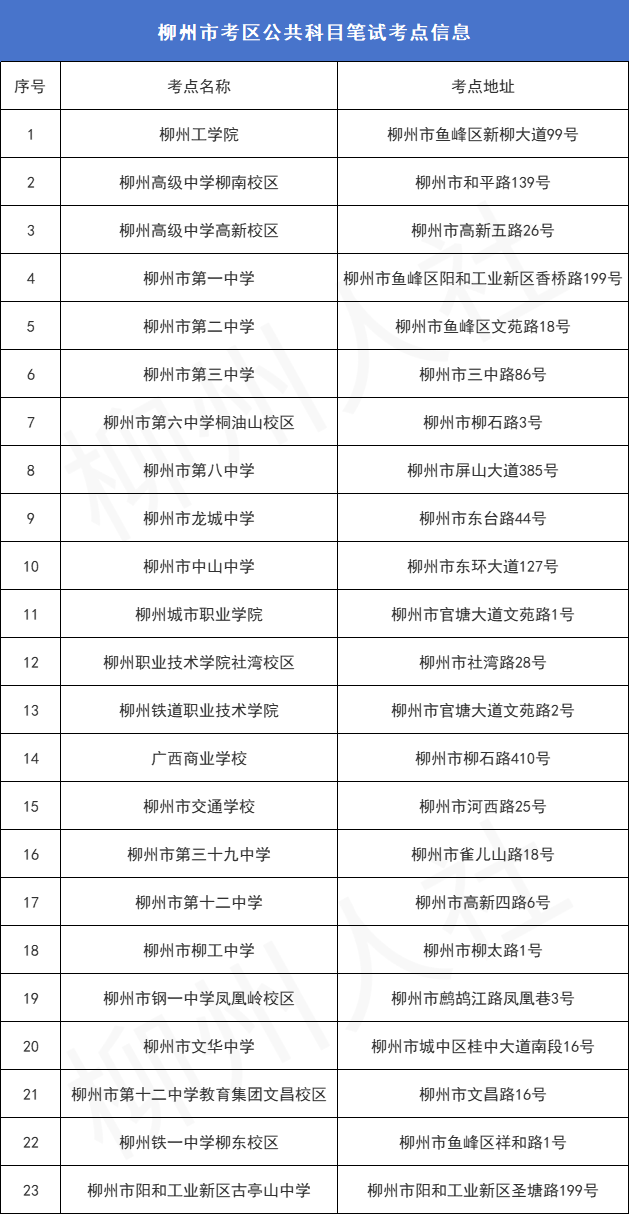 考生注意!2024年柳州公務(wù)員考試考場(chǎng)分布!