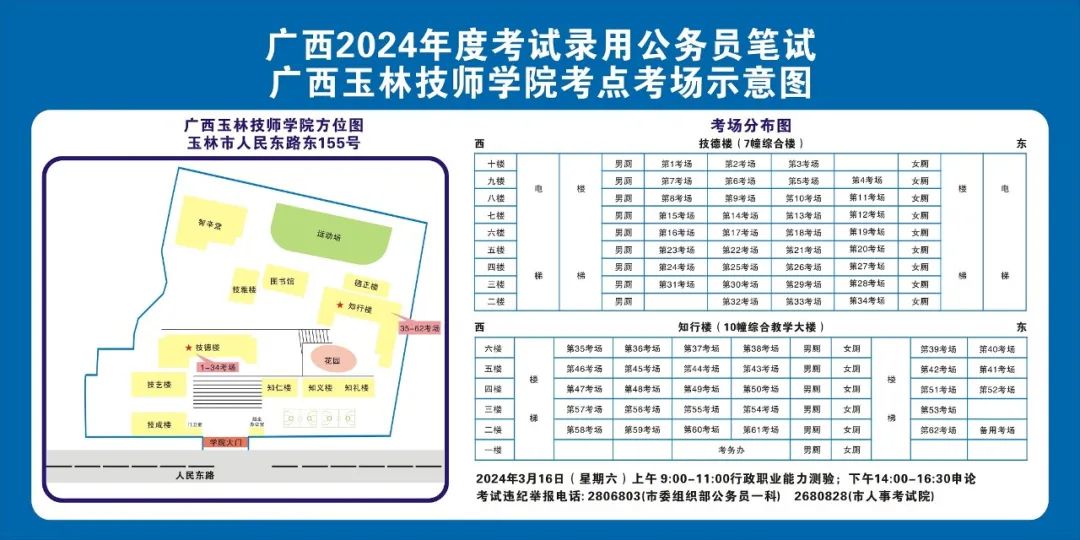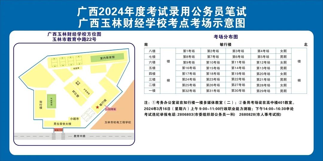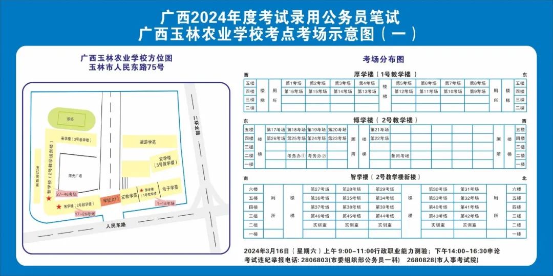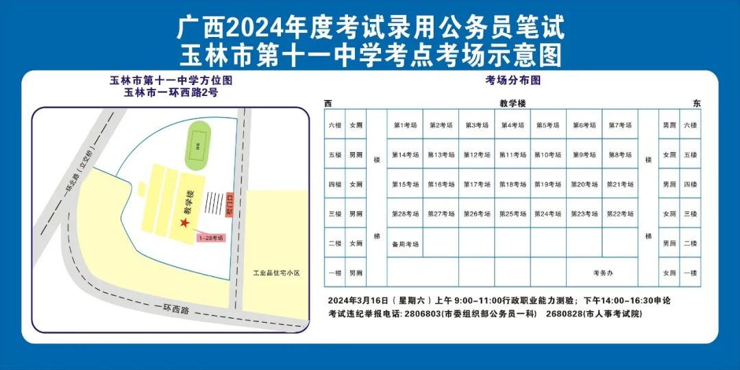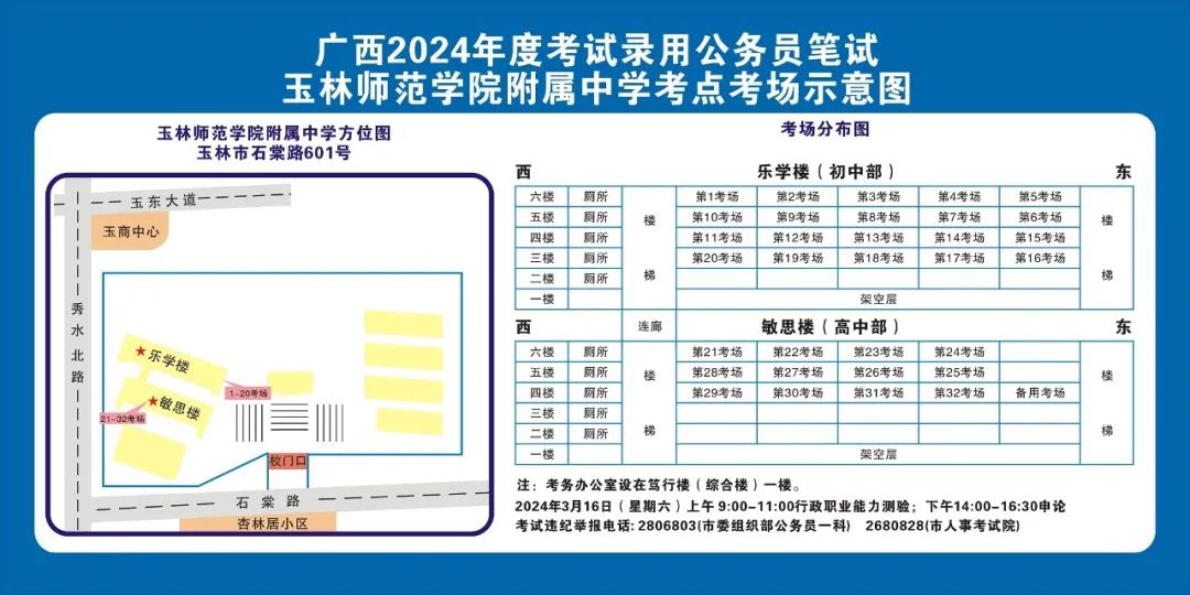除考試當(dāng)天考生可以進(jìn)入考點(diǎn)外,考生不得提前進(jìn)入考點(diǎn)查看考場(chǎng)(學(xué)校將在大門(mén)處擺放考場(chǎng)分布示意圖),玉林考區(qū)10個(gè)考點(diǎn)的考場(chǎng)布置情況如下: