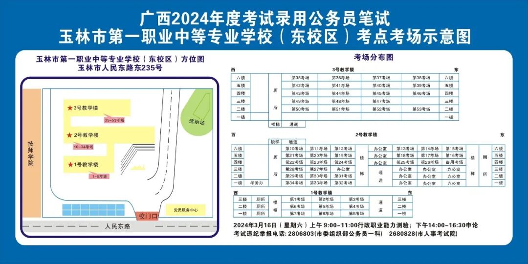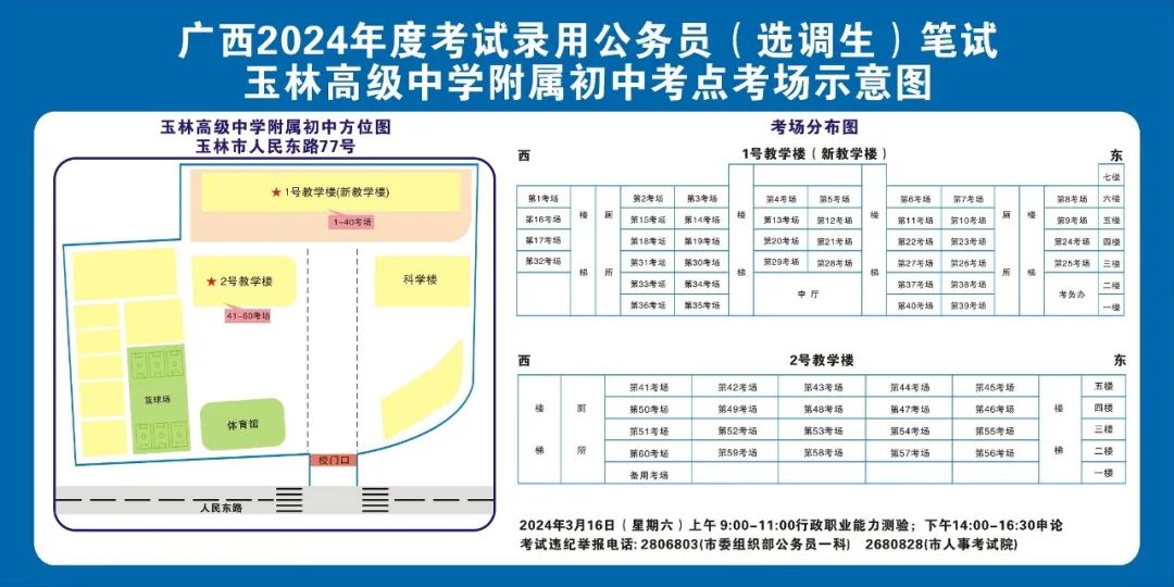 2024年選擇在玉林考區(qū)參加考試的考生人數(shù)較多,屆時(shí)考點(diǎn)區(qū)域內(nèi)的食宿、交通較為緊張。請(qǐng)?zhí)崆傲私獗救怂诳键c(diǎn)具體位置,熟悉考點(diǎn)周邊情況,根據(jù)考點(diǎn)的情況合理做好食宿安排和出行計(jì)劃。需要特別注意的是:玉林市第一職業(yè)中等專(zhuān)業(yè)學(xué)??键c(diǎn)是設(shè)在該校的東校區(qū)(人民東路東235號(hào));玉林市第一中學(xué)考點(diǎn)是設(shè)在該校的運(yùn)嶺路校區(qū)(二環(huán)北路1228號(hào))!