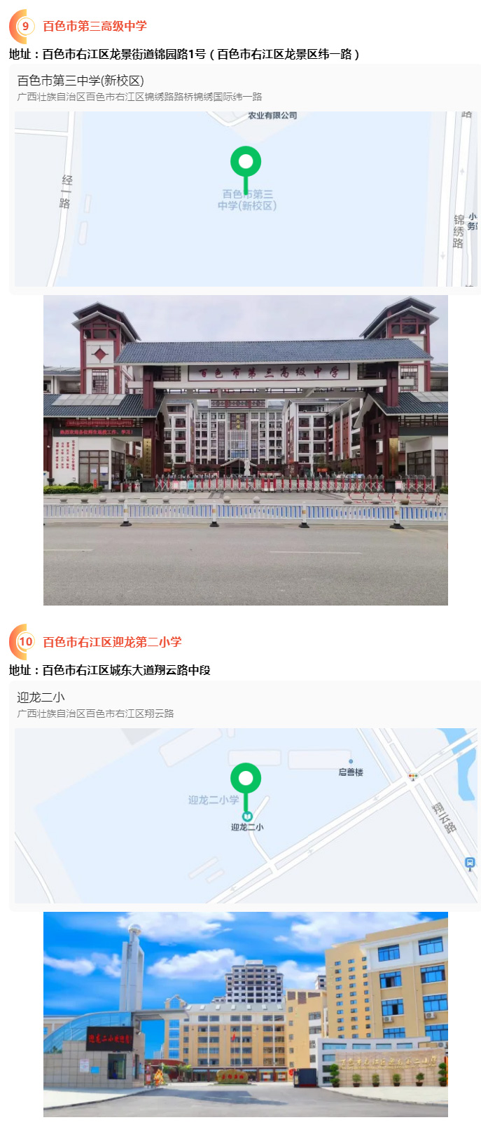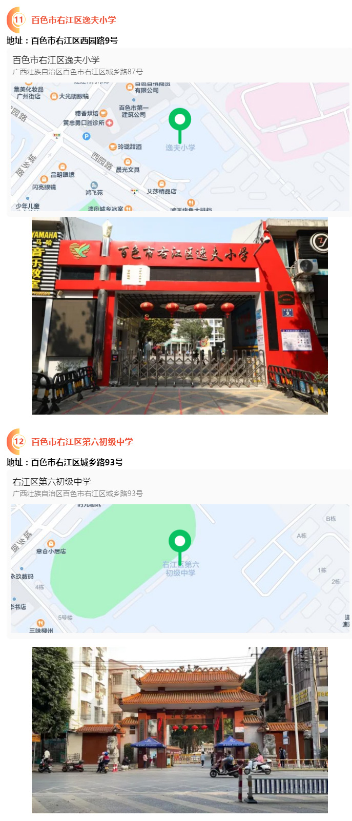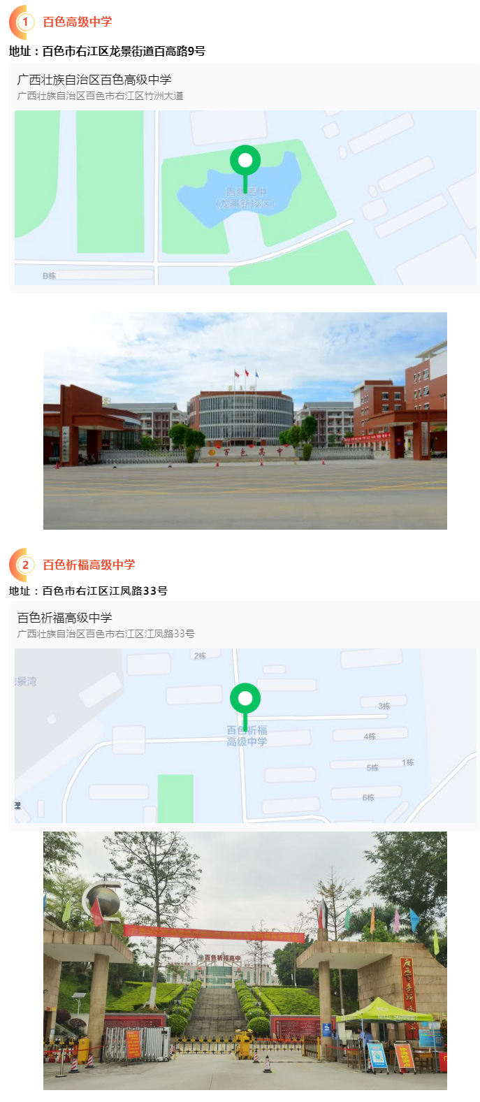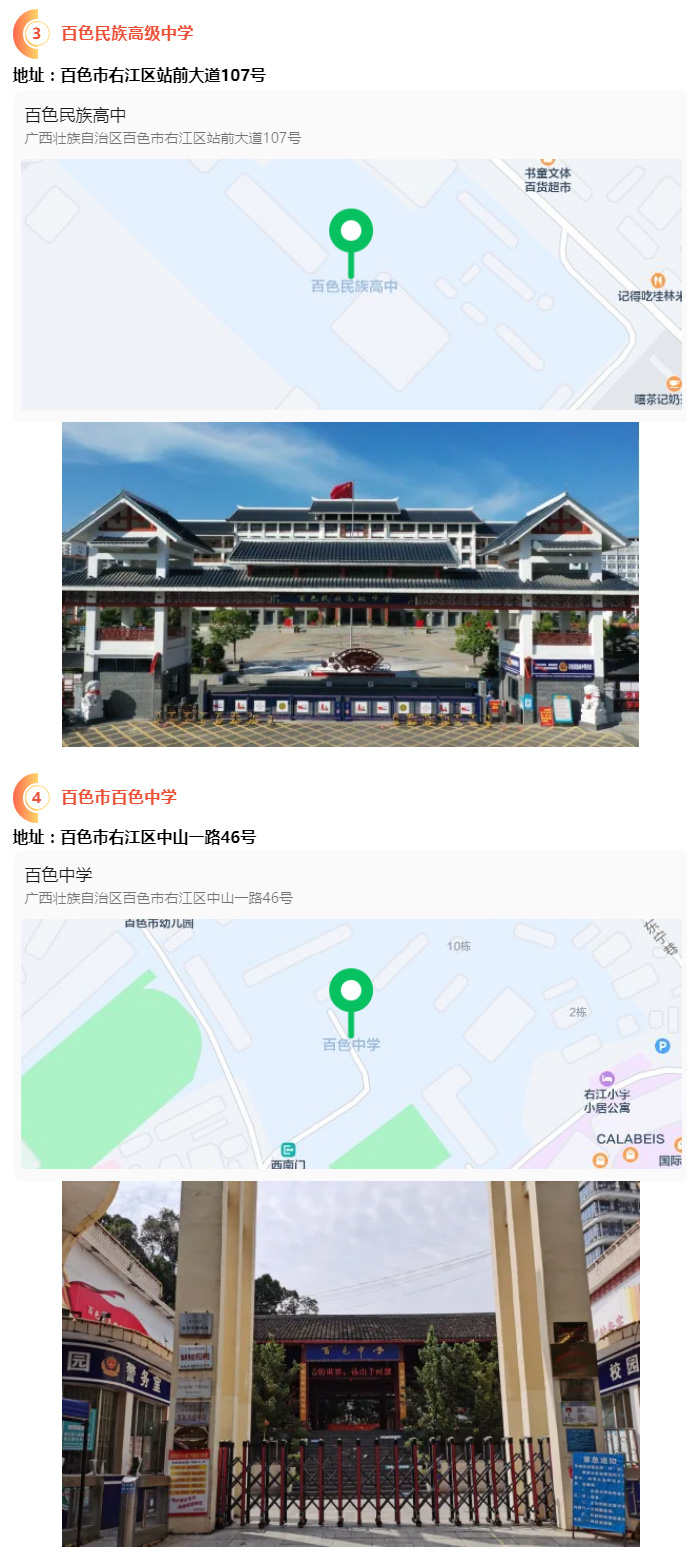 2.請?zhí)崆笆煜た键c地址,做好路線、住宿的安排。本次考試參考人數較多,考點分布分散,建議考生考前實地察看考點,確認考點入口位置,防止走錯考點。請充分考慮考點周邊交通通行情況和停車場地容量,合理安排出行方式,預留充足時間,確??荚嚠斕彀磿r到達。另外,考試期間百色市及各考點學校周邊的住宿比較緊張,請?zhí)崆邦A定。