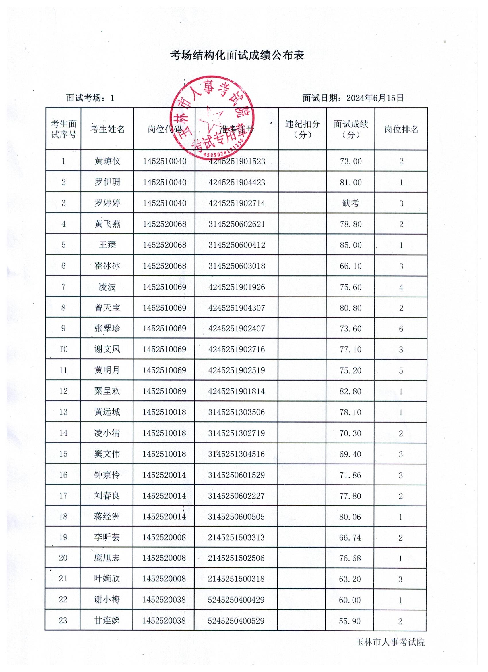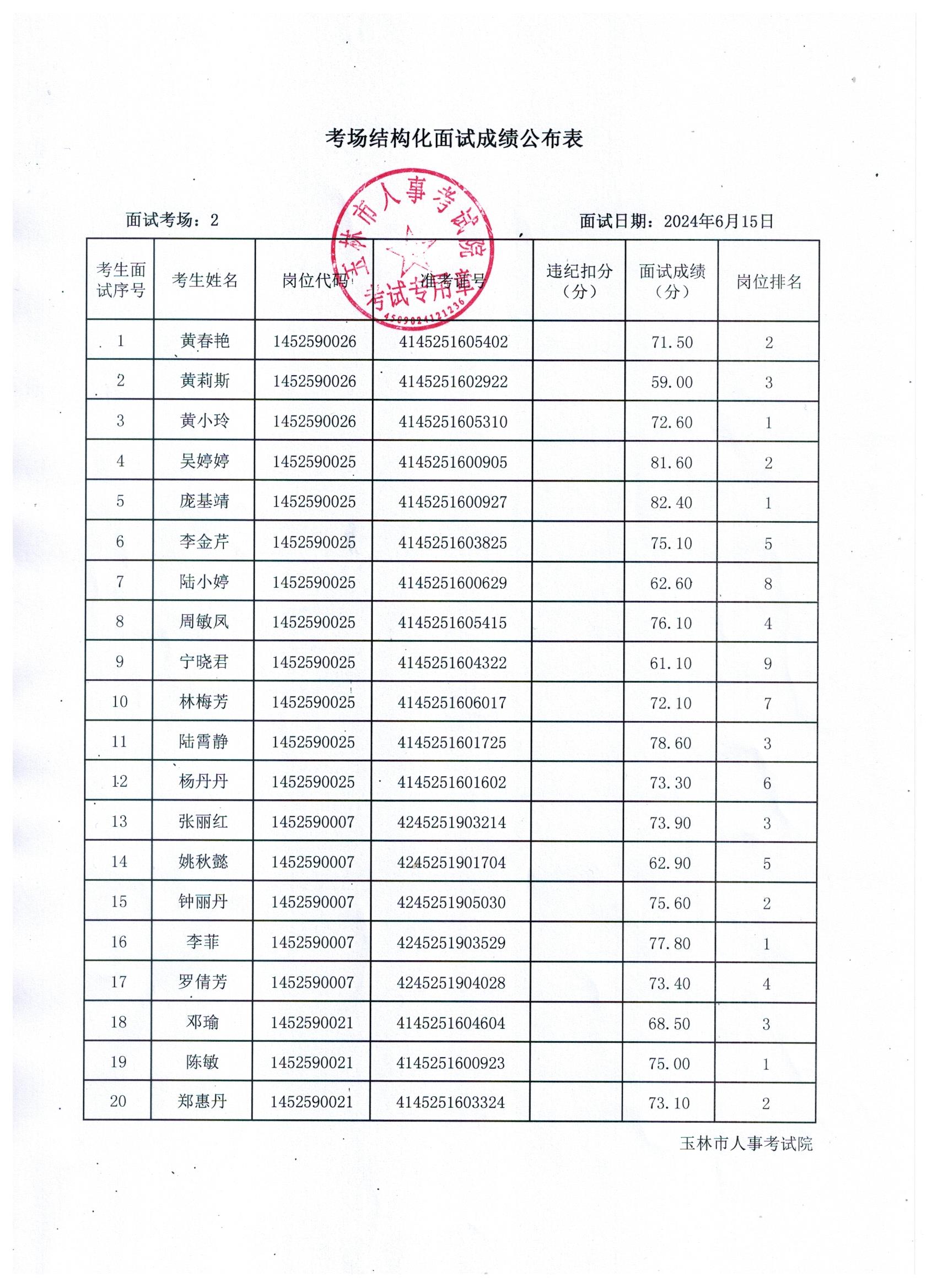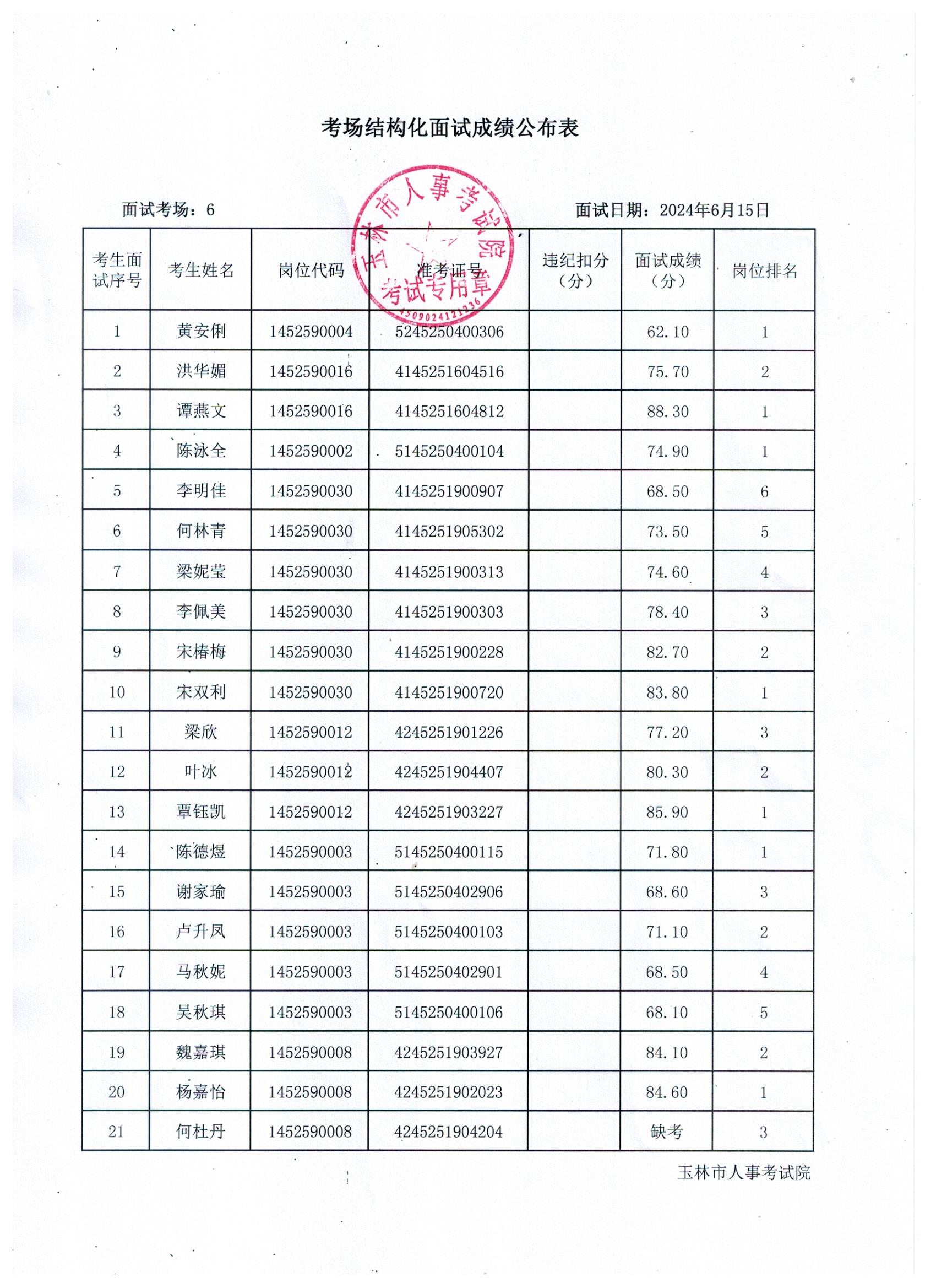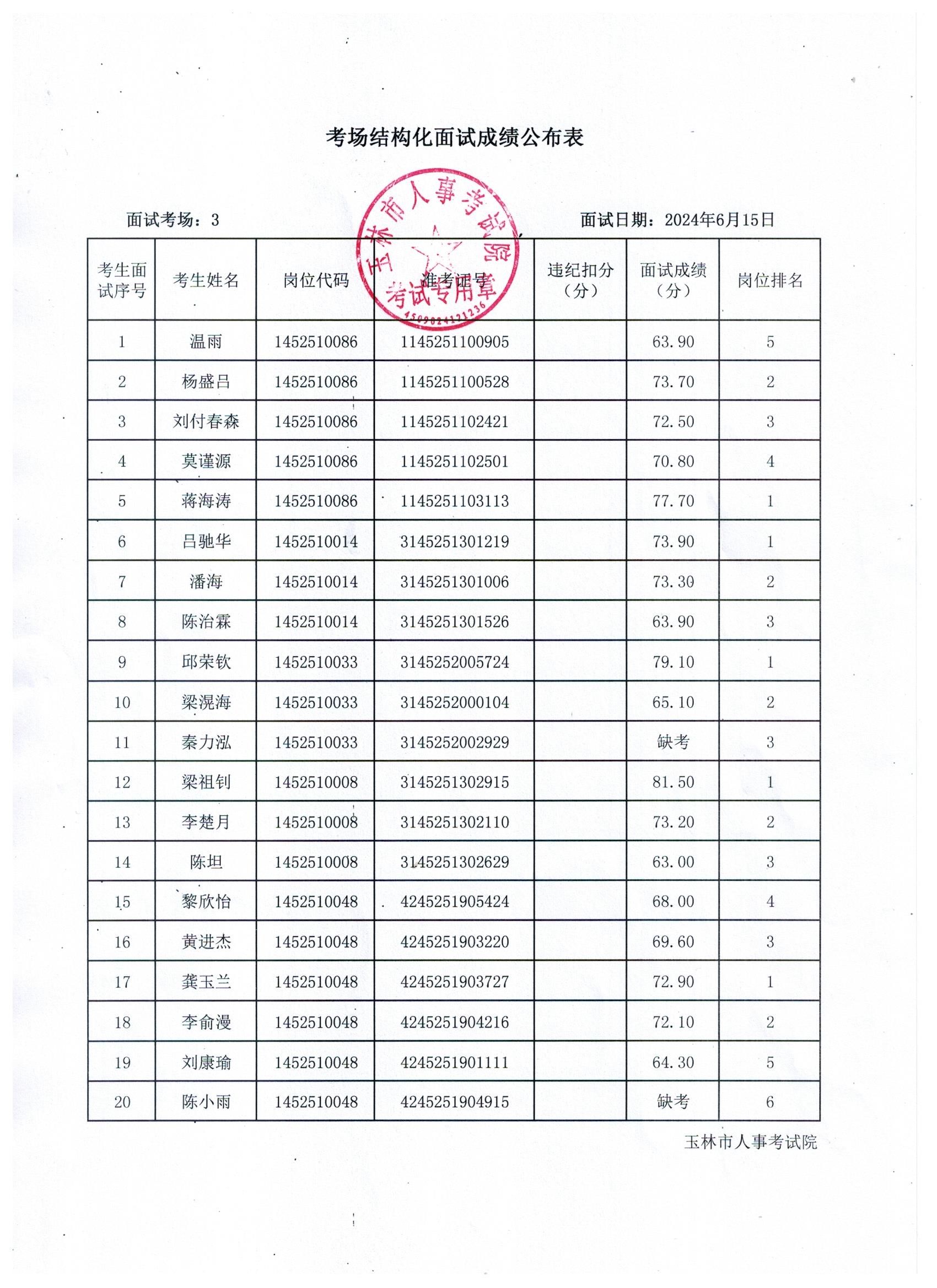 原文標(biāo)題:2024年玉林市直(含玉州區(qū)、福綿區(qū)、玉東新區(qū))事業(yè)單位公開(kāi)招聘人員面試成績(jī)公布(6月15日)