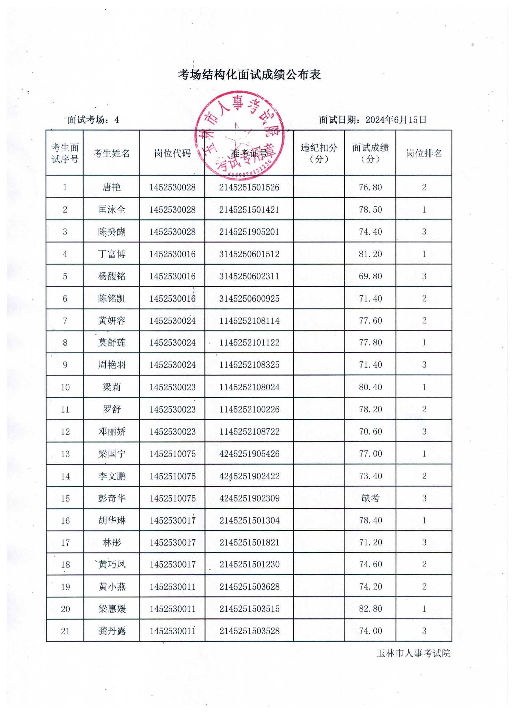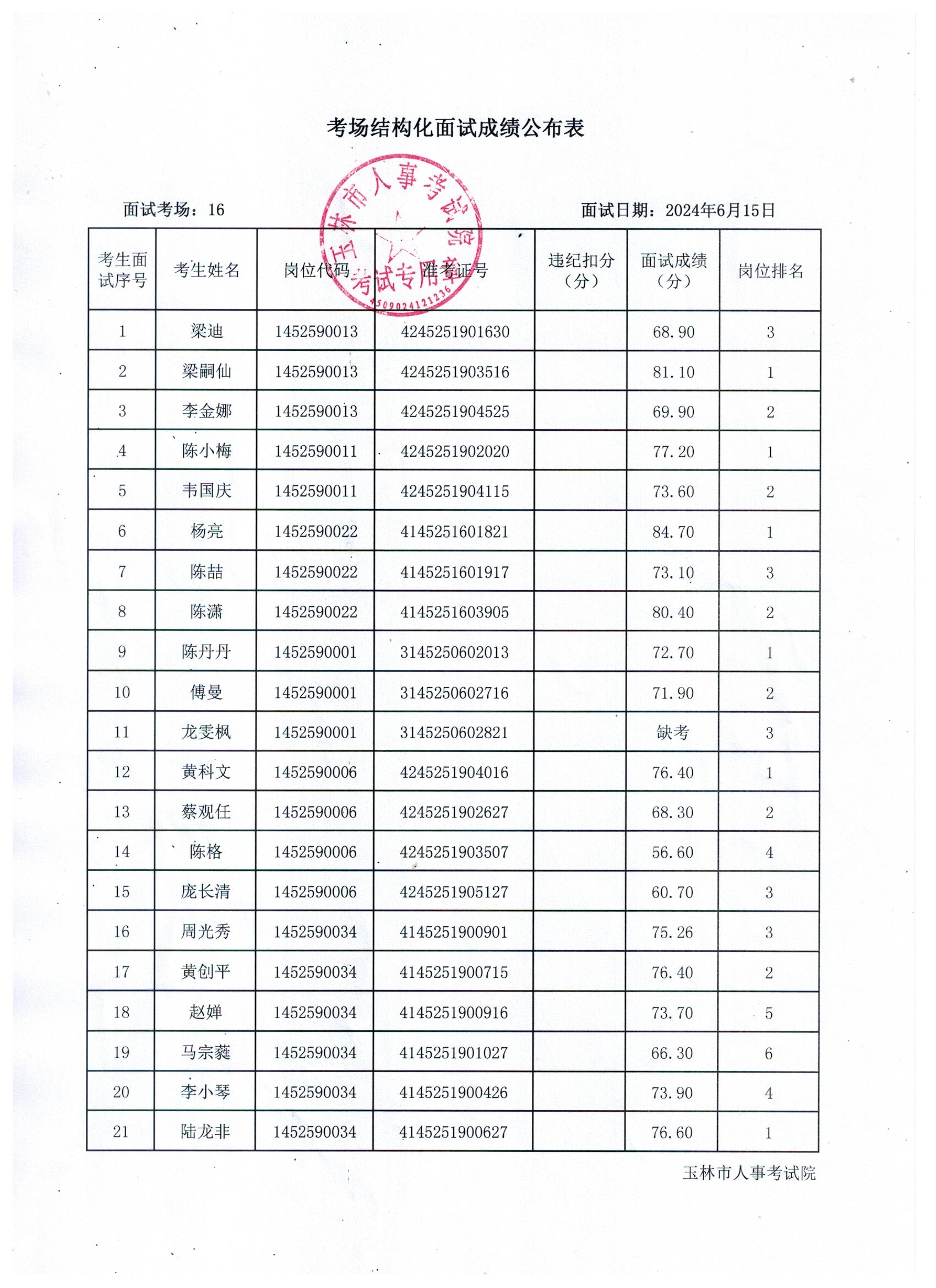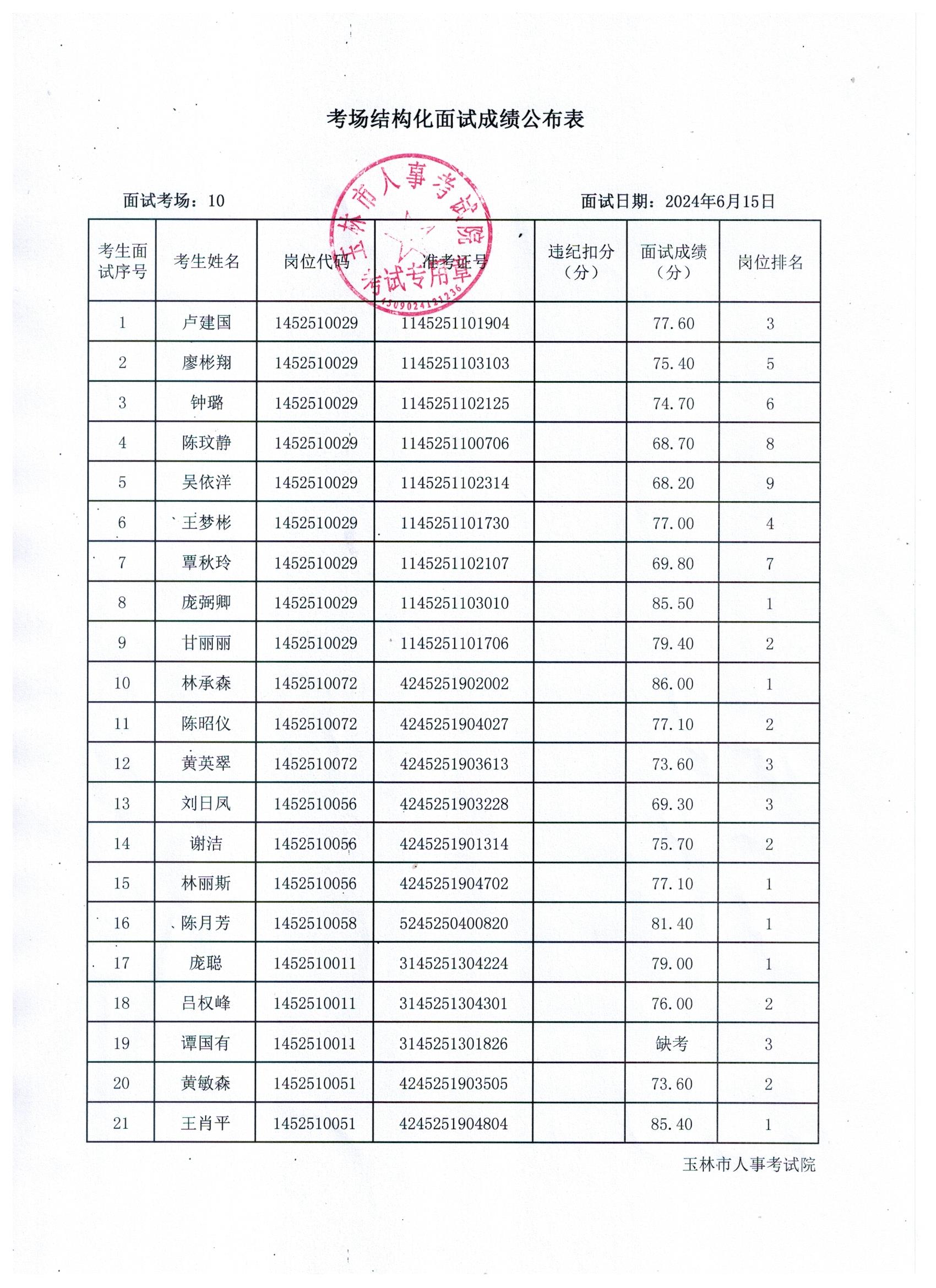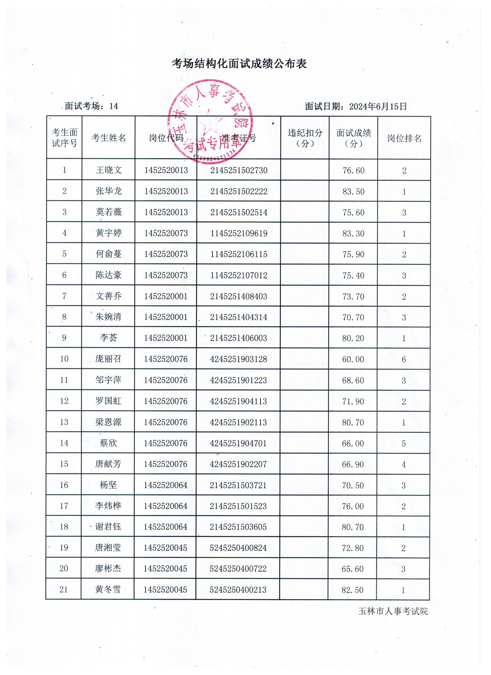 原文標(biāo)題:2024年玉林市直(含玉州區(qū)、福綿區(qū)、玉東新區(qū))事業(yè)單位公開(kāi)招聘人員面試成績(jī)公布(6月15日)