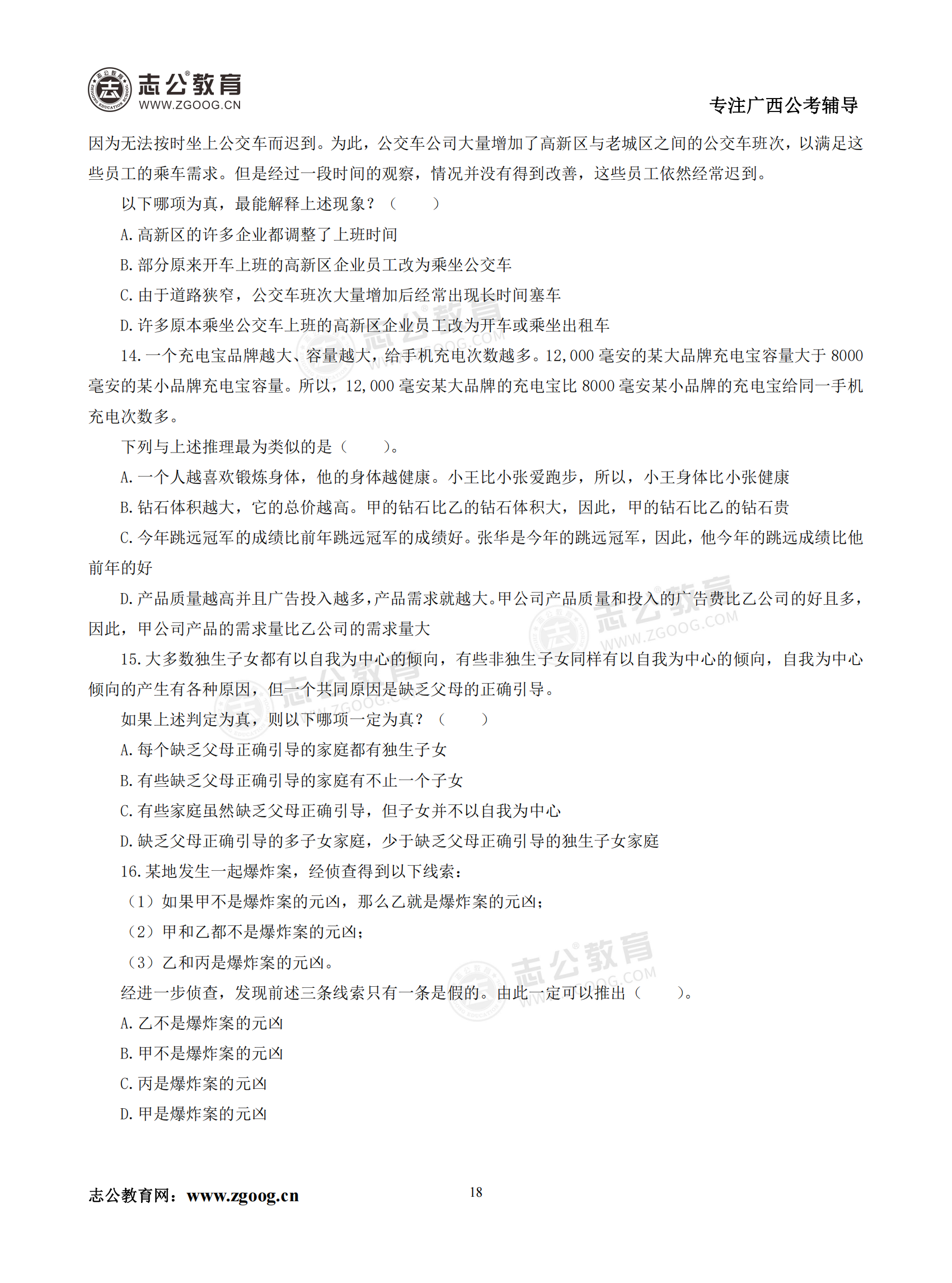 【公考模塊練習】判斷推理題四(試題)