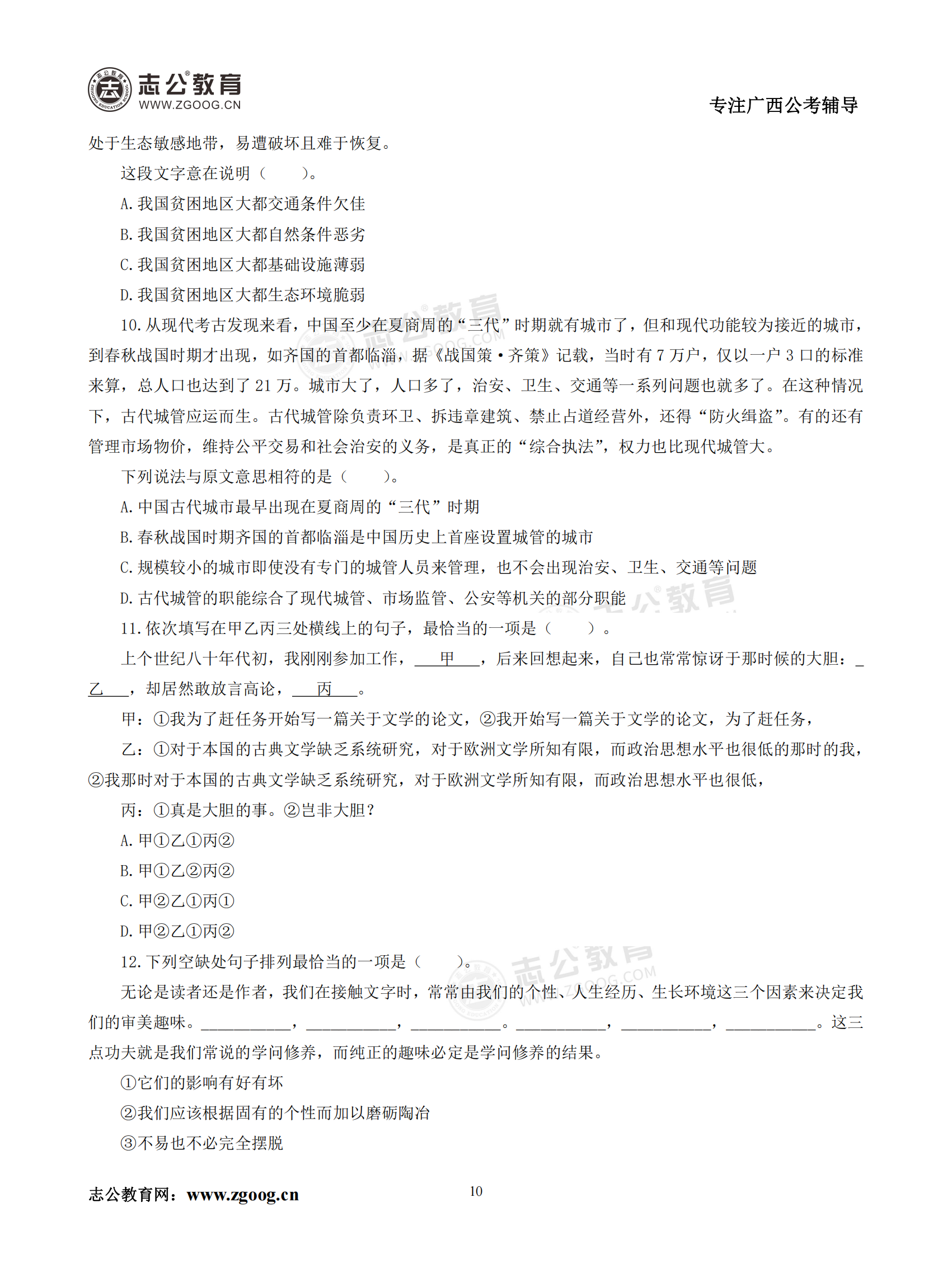【公考模塊練習】言語理解題三(試題)