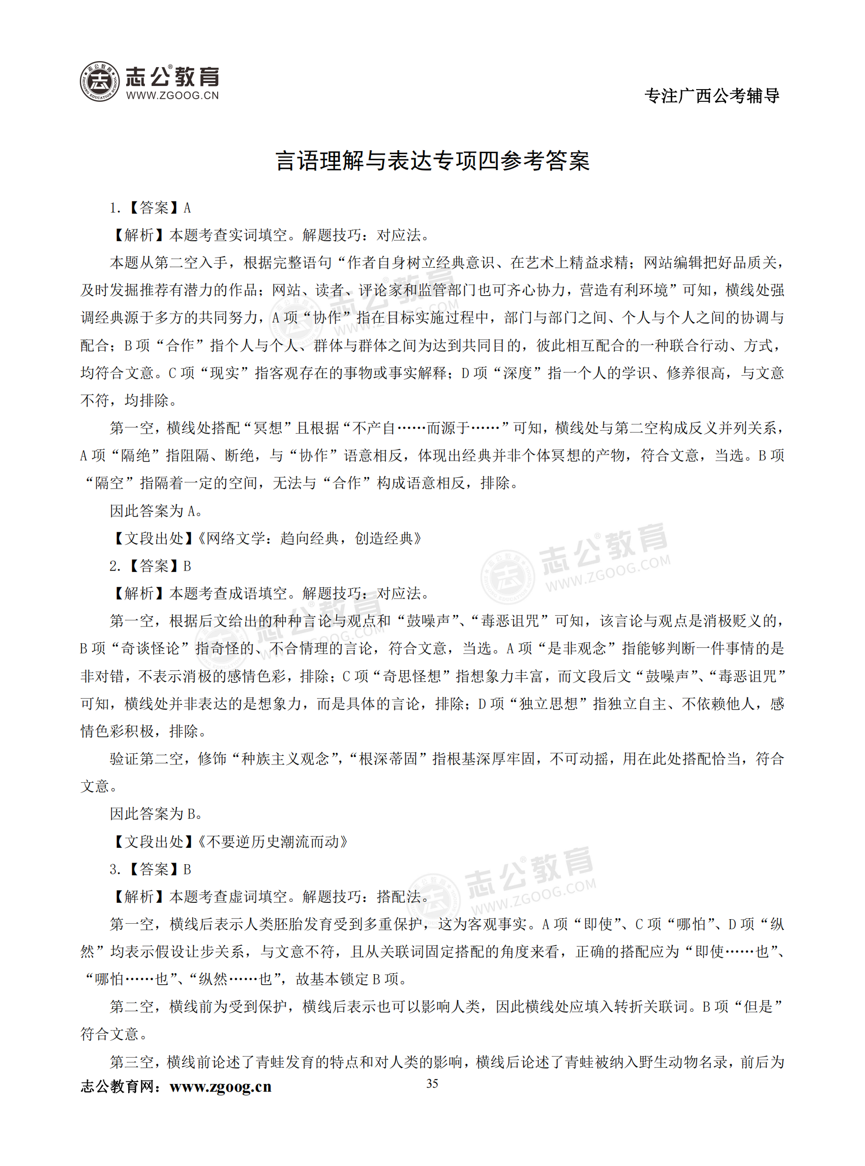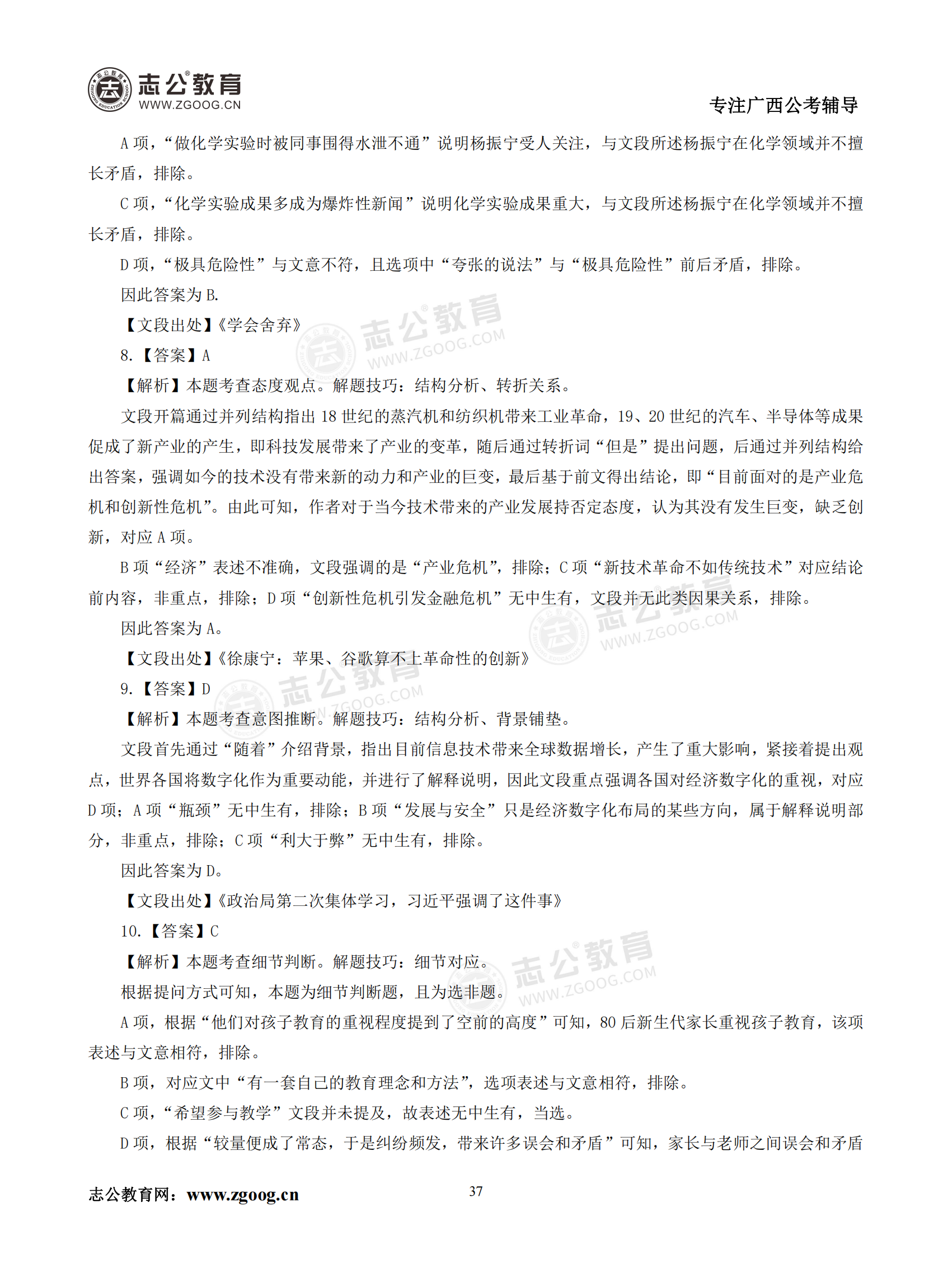 【公考模塊練習】言語理解題四(答案)