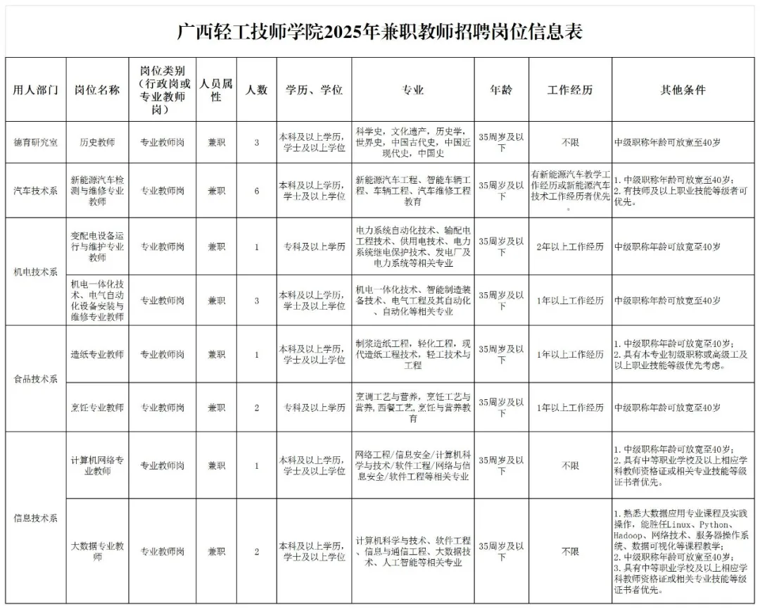 原文標(biāo)題:2025年廣西輕工技師學(xué)院兼職教師招聘19人公告