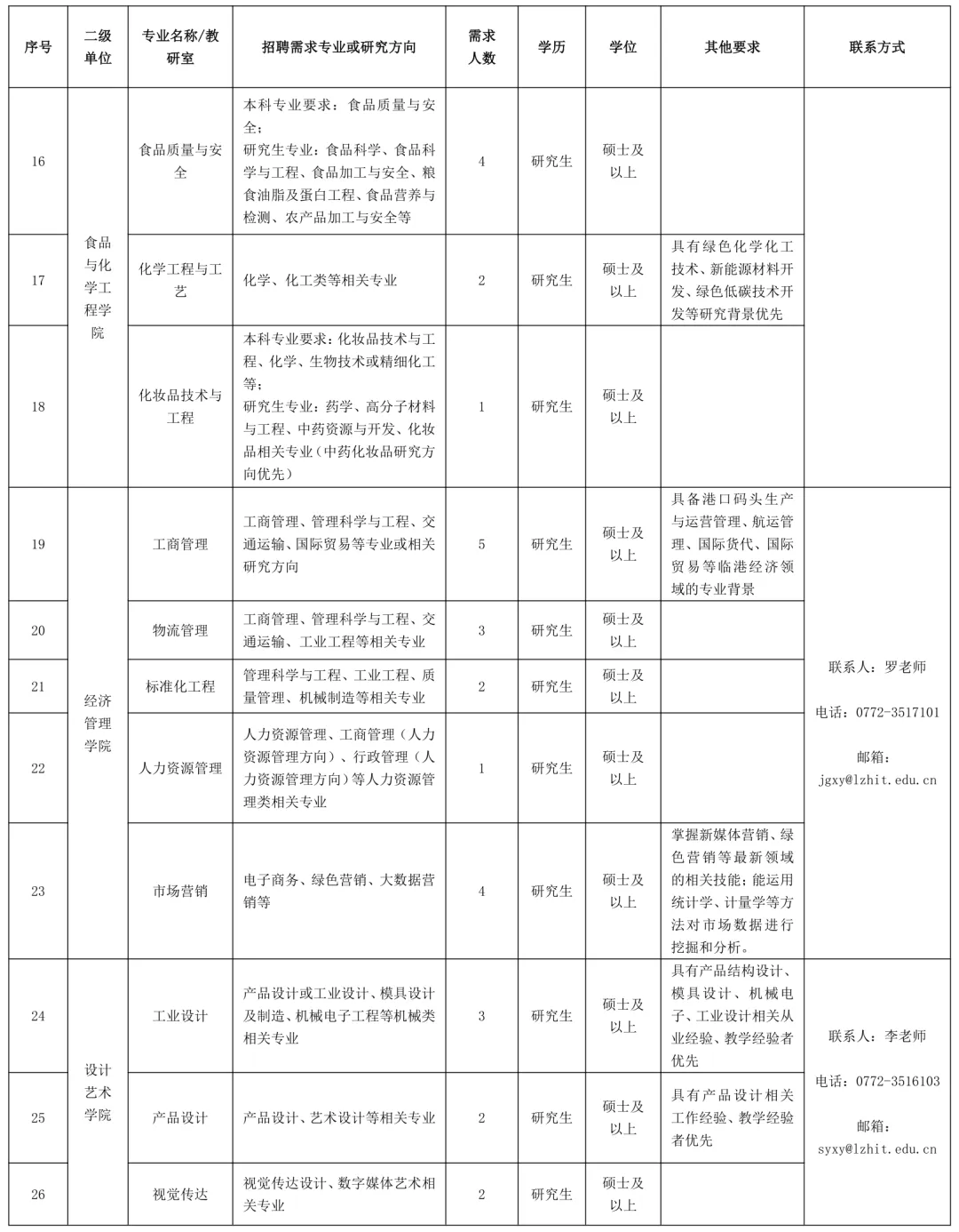 聯(lián)系地址:廣西柳州市魚峰區(qū)新柳大道99號柳州工學(xué)院人事處(科教樓1409辦公室)
