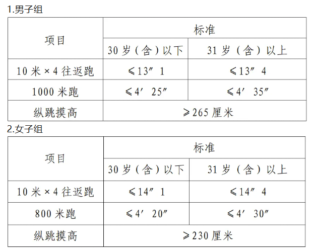 參加體能測評人員為筆試考試成績合格的考生。體能測評的標準:參照《關(guān)于印發(fā)公安機關(guān)錄用人民警察體能測評項目和標準(暫行)的通知》(人社部發(fā)〔2011〕48號)的標準。