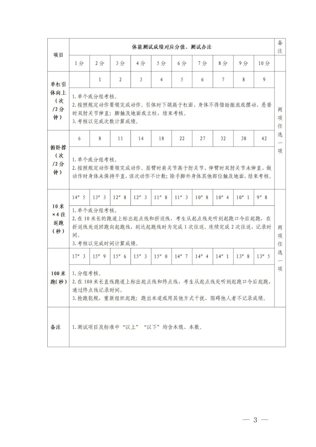 測試時間、地點具體以通知為準(zhǔn),應(yīng)聘人員須參加體能測試,并當(dāng)場簽訂《體能測試健康安全風(fēng)險承諾書》。體能測試有兩項及兩項以上不得分的視為不合格(標(biāo)準(zhǔn)參照附件)。