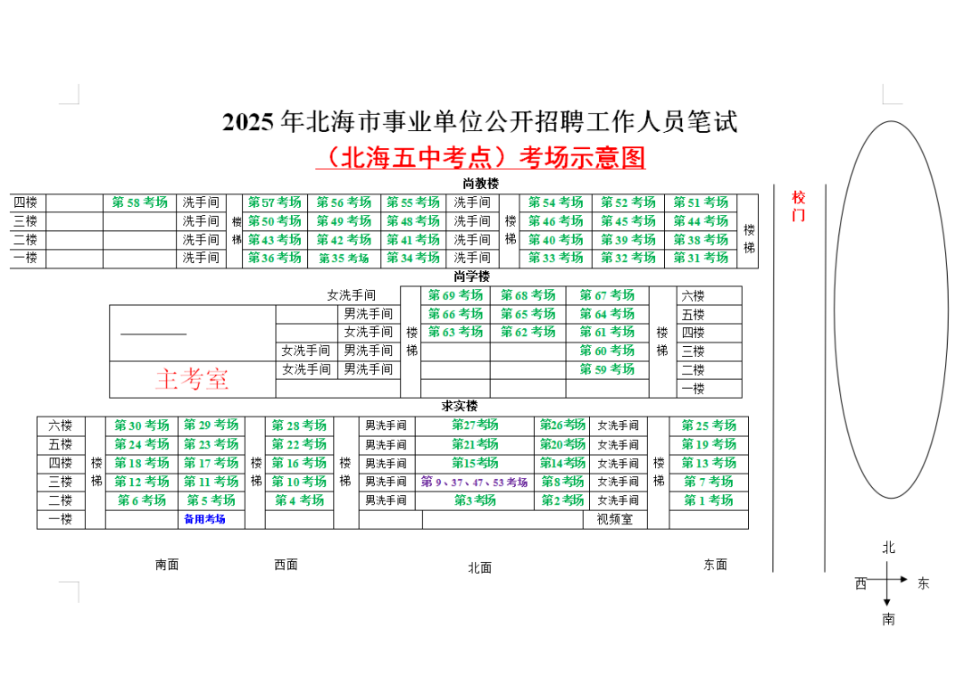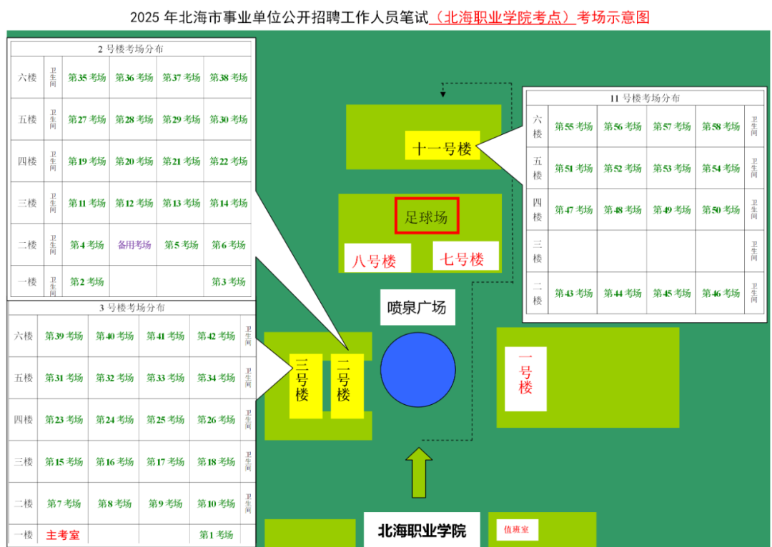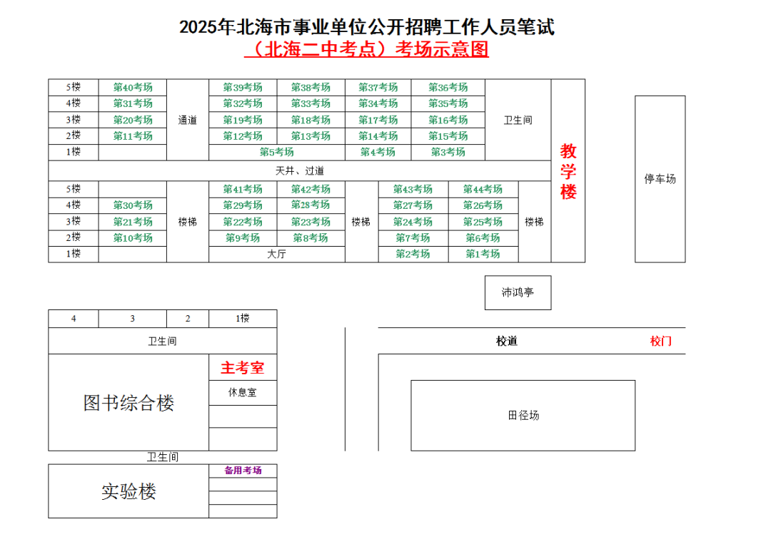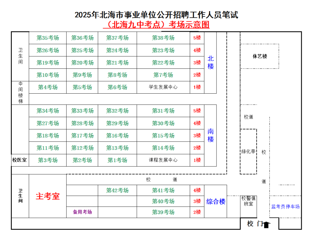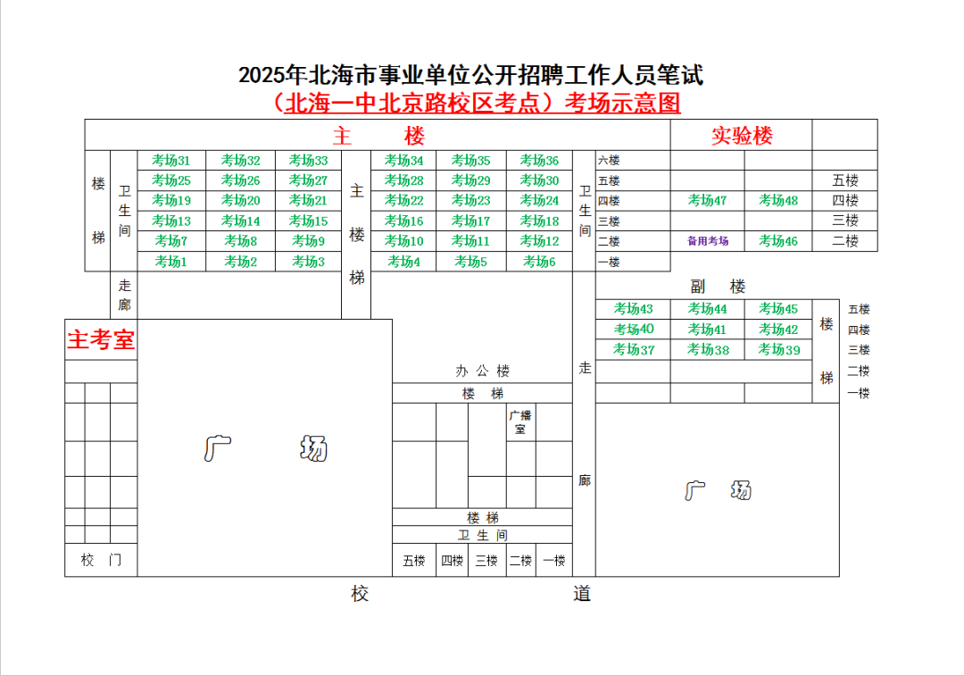 本次筆試北海市共設(shè)十個(gè)考點(diǎn),考點(diǎn)考場(chǎng)布置分別為: