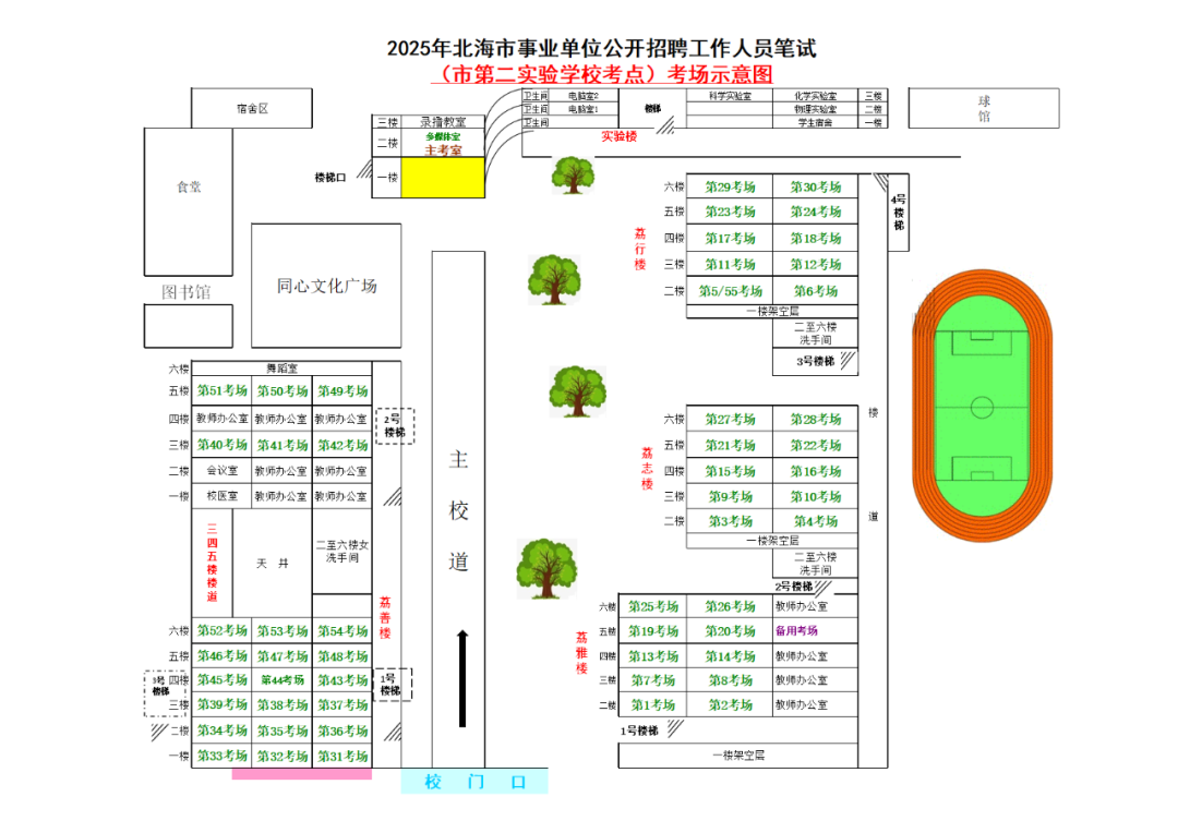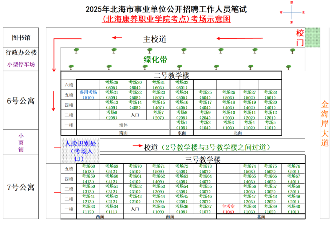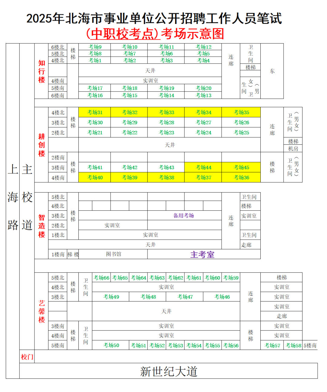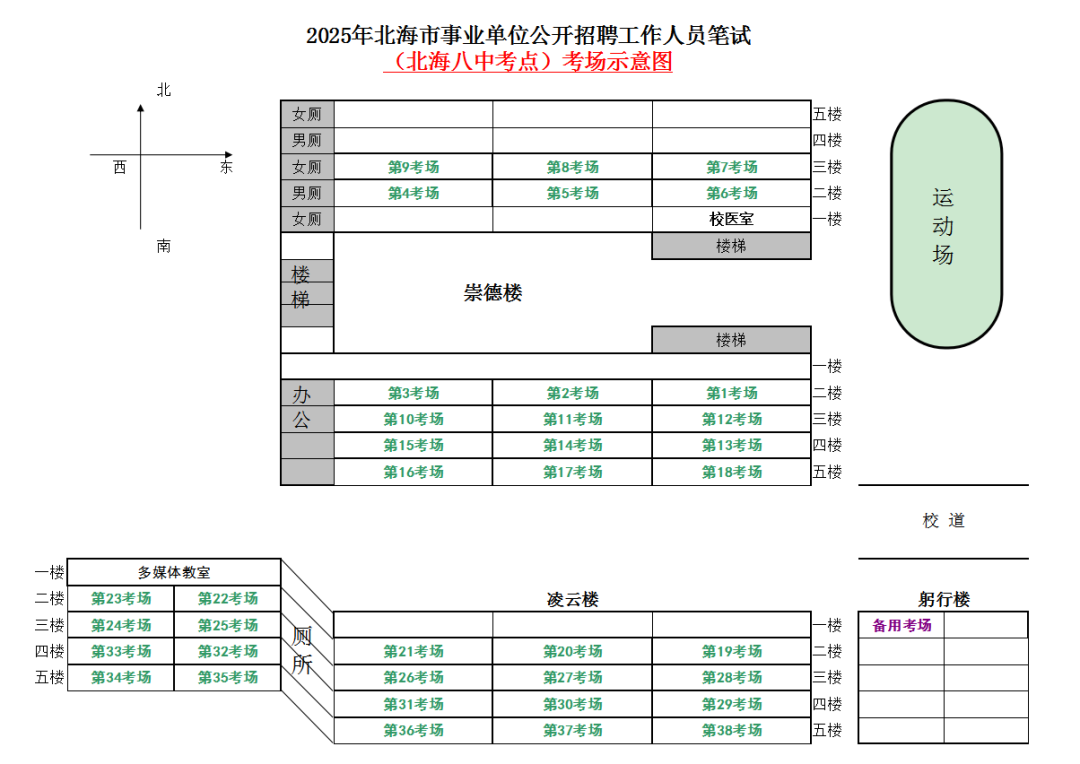 本次筆試北海市共設(shè)十個(gè)考點(diǎn),考點(diǎn)考場(chǎng)布置分別為: