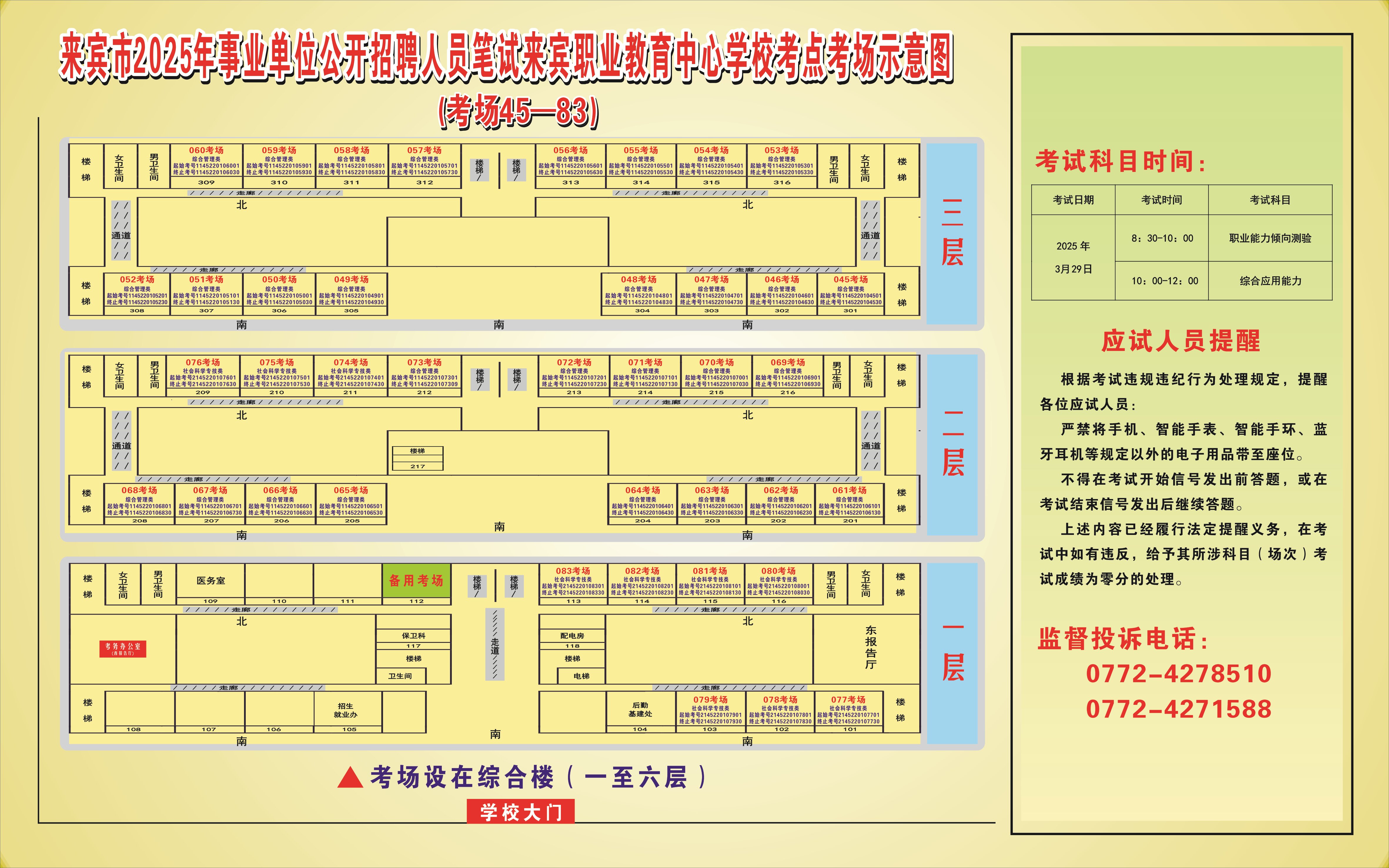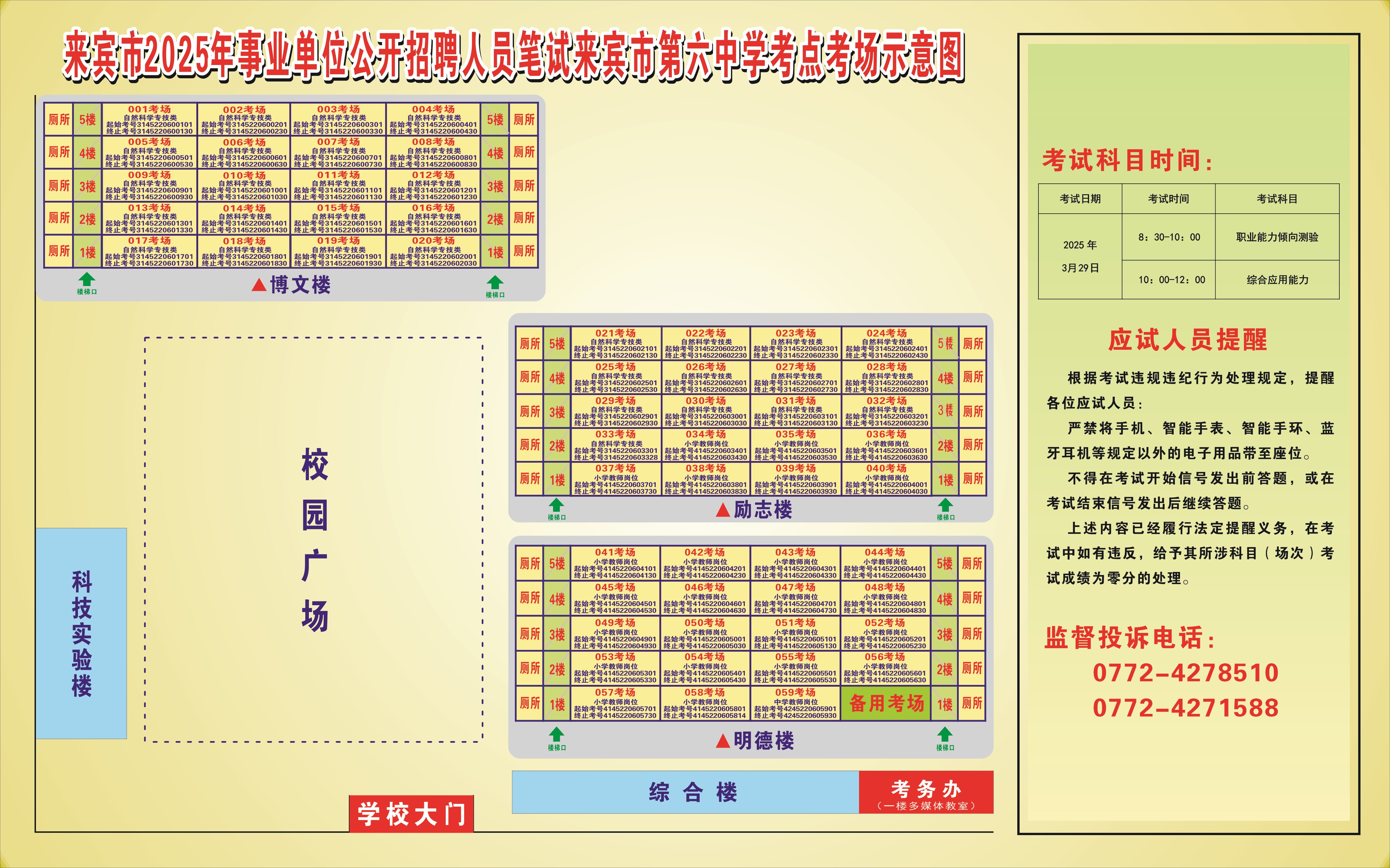 2025年來賓市公開招聘事業(yè)單位人員筆試 考生須知及考點(diǎn)考場示意圖