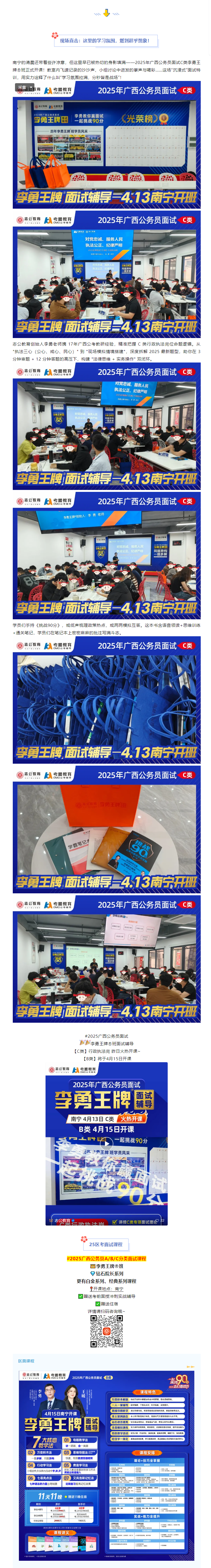 2025年廣西公務員面試戰(zhàn)役已打響!想在C類崗位面試中一舉奪魁?4月13日,南寧考生翹首以盼的 【李勇王牌®班面試輔導C類課程】 火熱開課!這里沒有枯燥的理論堆砌,只有 “全員沉浸、全程高能” 的實戰(zhàn)練兵場,助你挑戰(zhàn)面試90分!