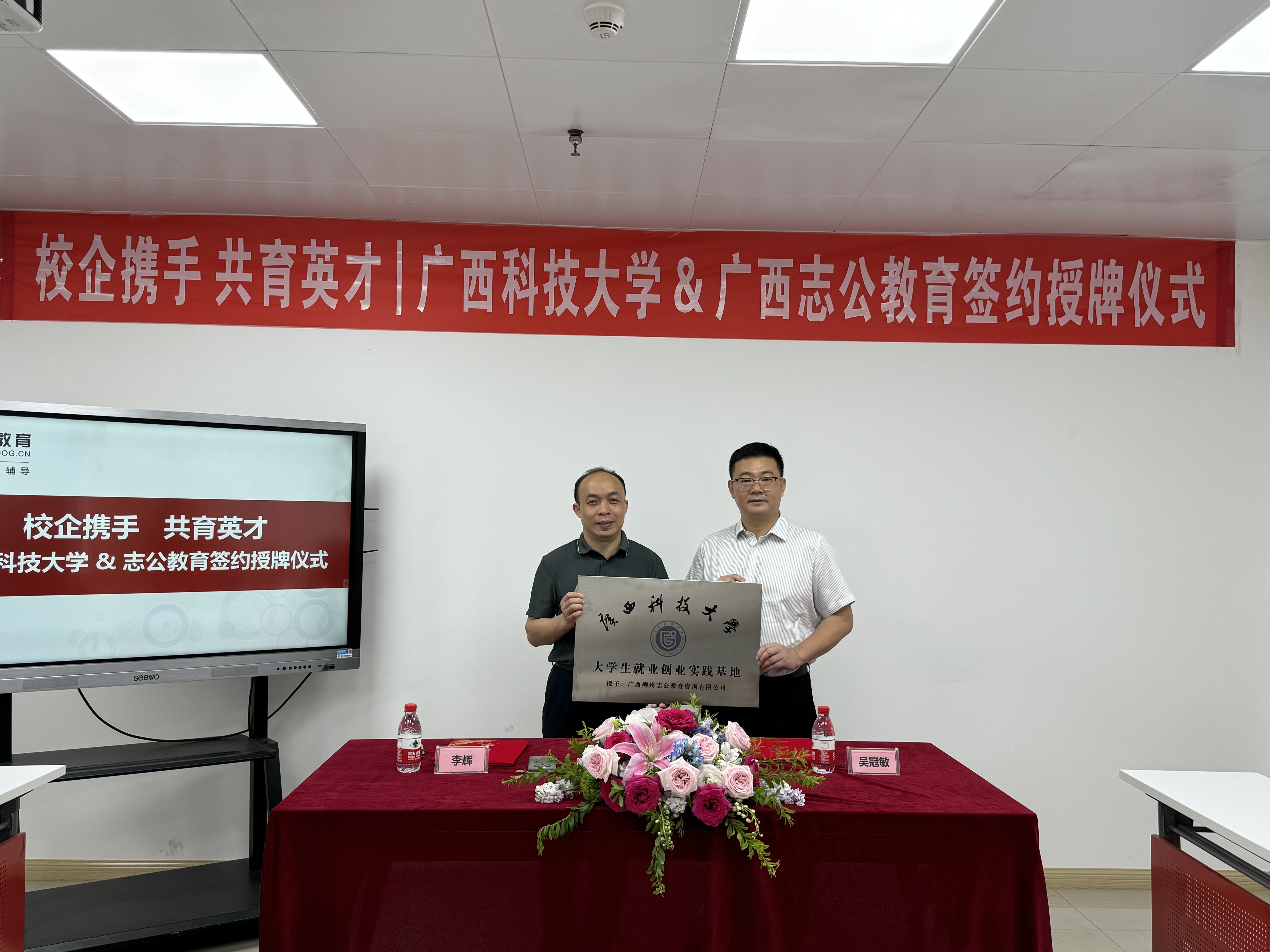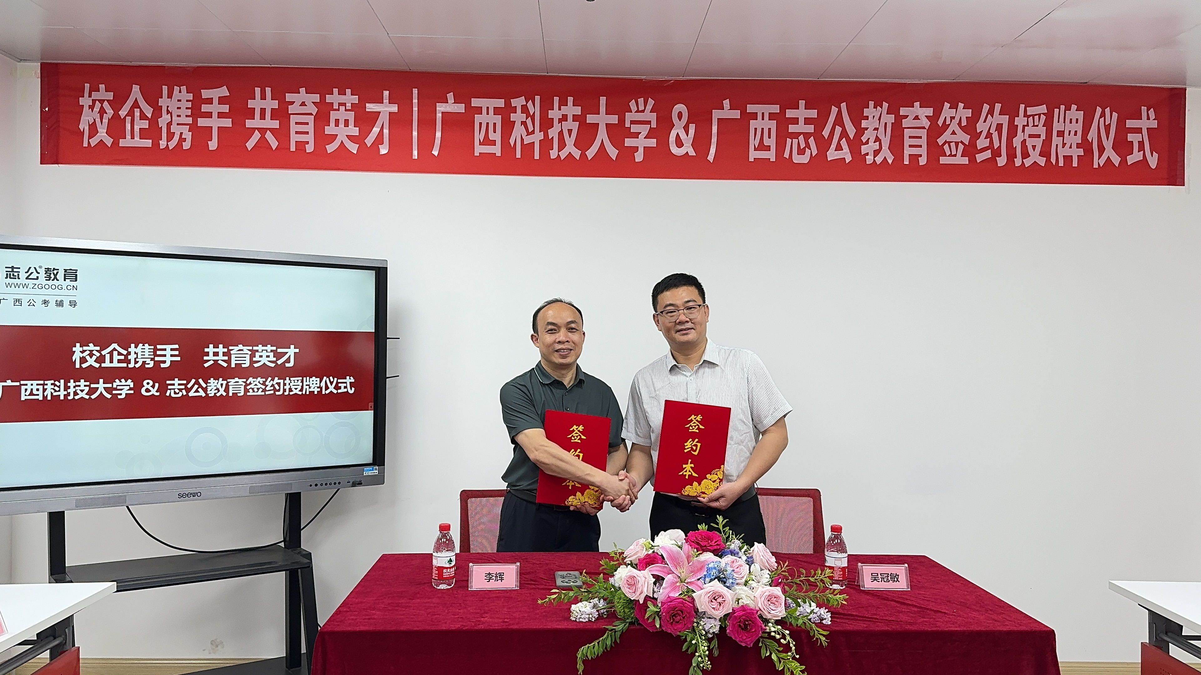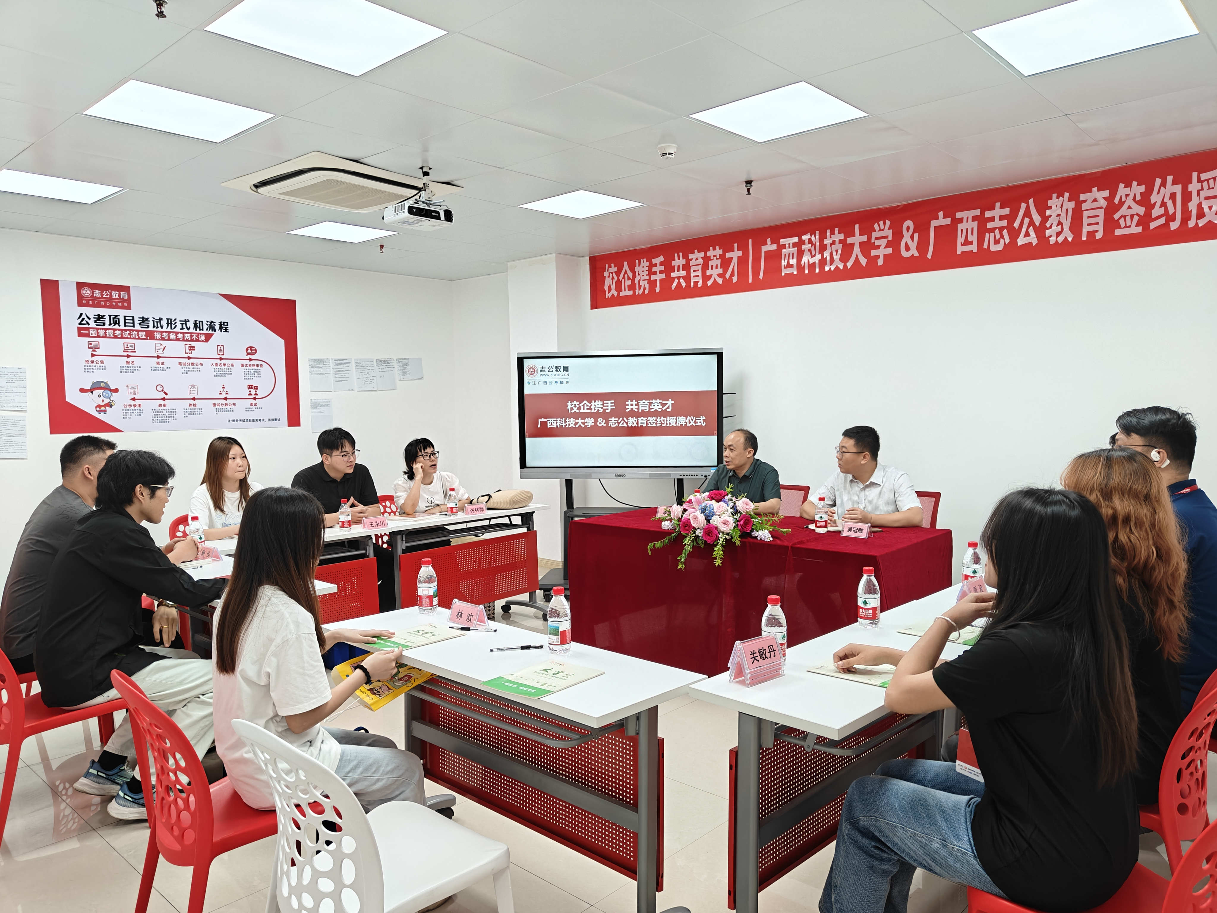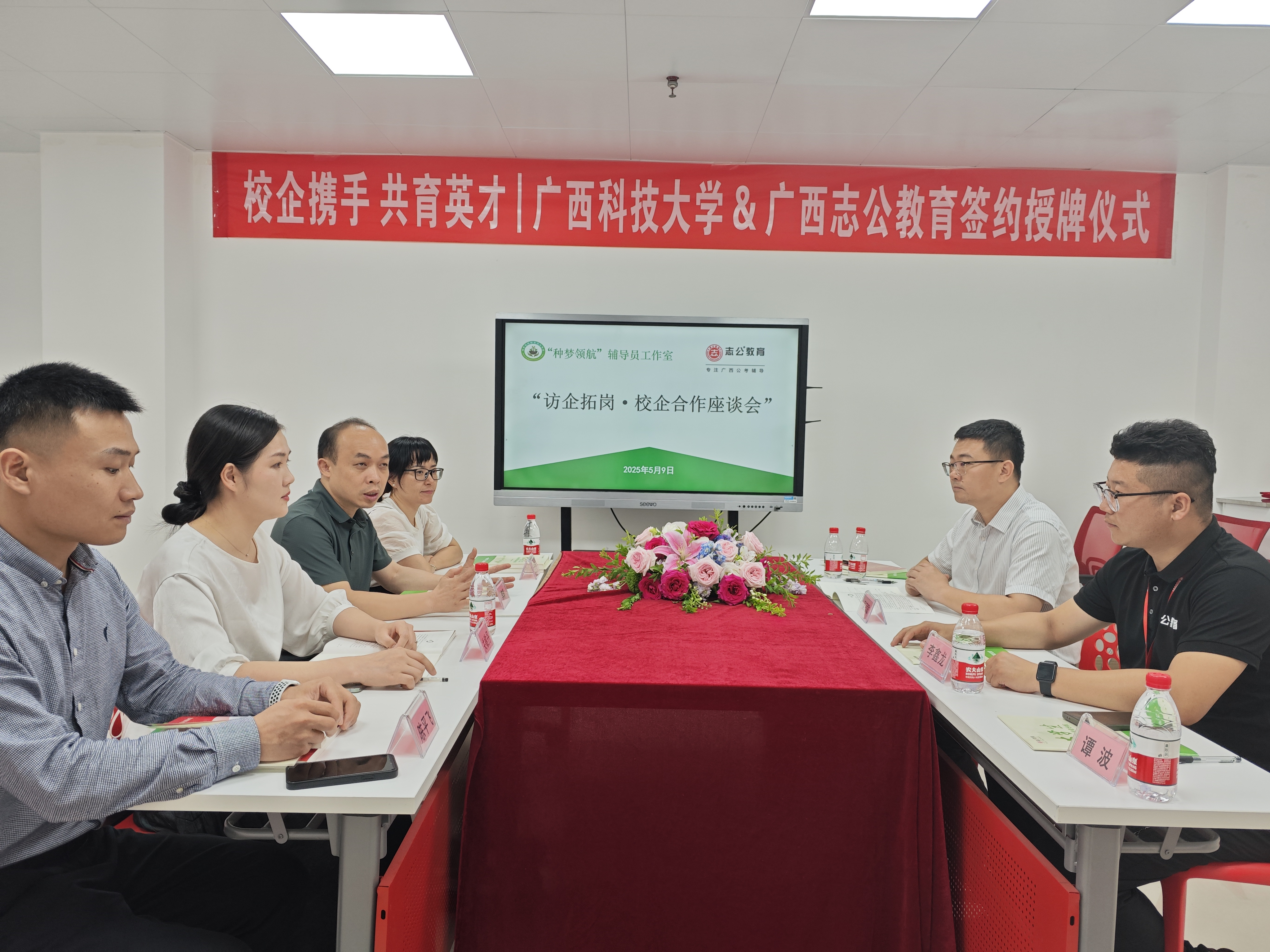 2025年5月9日,志公教育柳州分校與廣西科技大學(xué)外國(guó)語(yǔ)學(xué)院在深入交流與友好協(xié)商的基礎(chǔ)上,于廣西科技大學(xué)成功舉行戰(zhàn)略合作簽約儀式。此次活動(dòng)由志公教育CBG總經(jīng)理吳冠敏先生帶隊(duì),廣西科技大學(xué)外國(guó)語(yǔ)學(xué)院黨委書記李輝、廣西科技大學(xué)"種夢(mèng)領(lǐng)航"工作室負(fù)責(zé)人張林微及師生代表共同參與,標(biāo)志著雙方在產(chǎn)教融合、人才培養(yǎng)及大學(xué)生就業(yè)創(chuàng)業(yè)領(lǐng)域的合作邁入新階段。