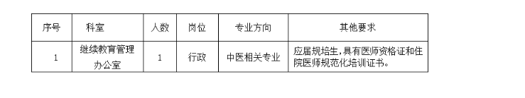 根據(jù)醫(yī)院的發(fā)展需求,現(xiàn)公開招聘1名工作人員,具體要求如下: