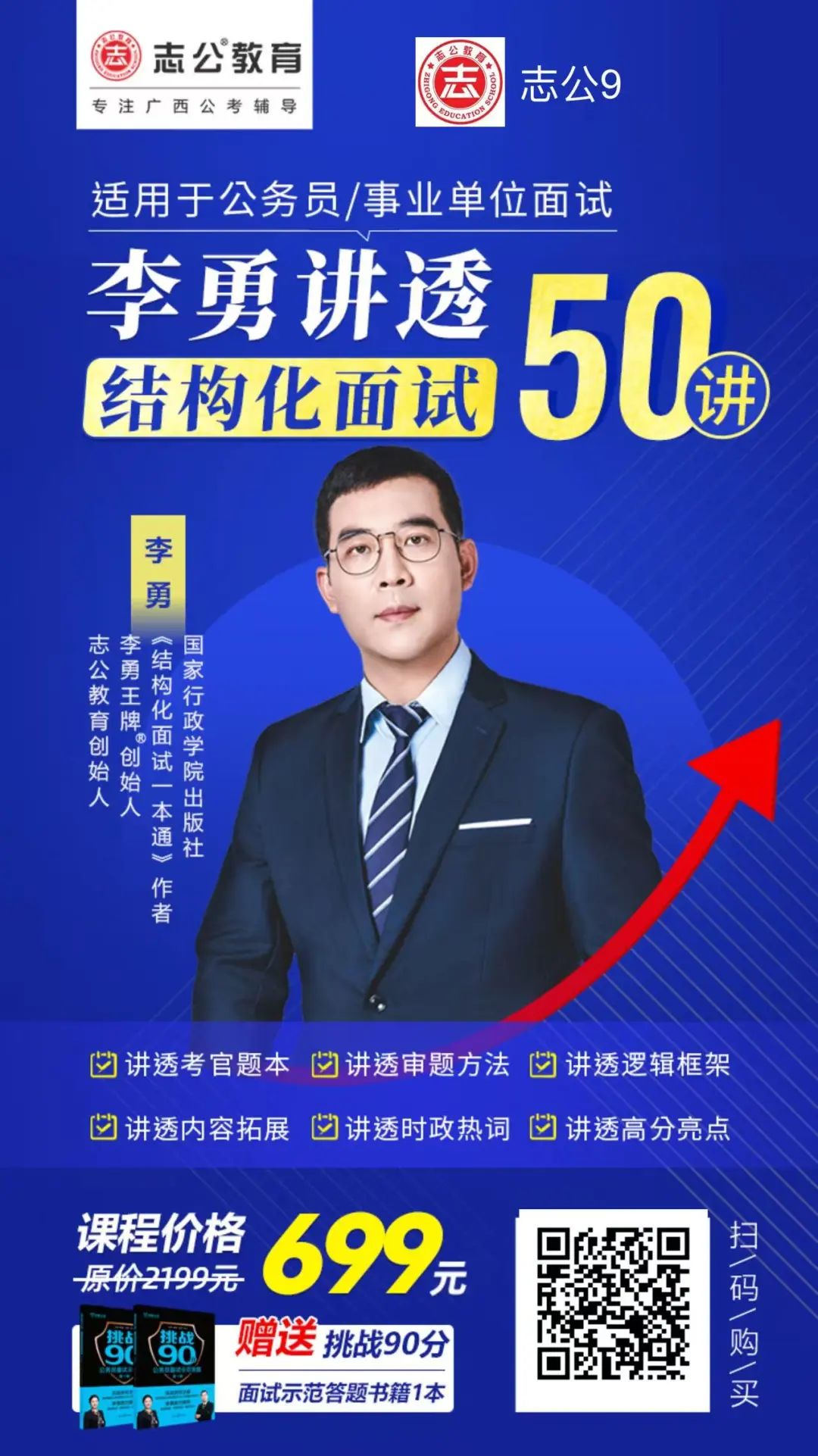 李勇——志公教育創(chuàng)始人、李勇王牌®班創(chuàng)始人,志公教育名師。主講結(jié)構(gòu)化面試、結(jié)構(gòu)化小組面試,專注廣西公考輔導(dǎo)17年。獨(dú)創(chuàng)“萬(wàn)變積木教學(xué)法”,擅長(zhǎng)在教學(xué)中運(yùn)用金字塔原理和行動(dòng)學(xué)習(xí),課堂生動(dòng)有趣,形成獨(dú)特的授課體系。激發(fā)學(xué)員學(xué)習(xí)興趣的同時(shí)開發(fā)學(xué)員的潛能,讓學(xué)習(xí)事半功倍,幫助無(wú)數(shù)學(xué)子達(dá)成目標(biāo)。同時(shí)也是人民日?qǐng)?bào)出版社《挑戰(zhàn)90分第三輯》作者。