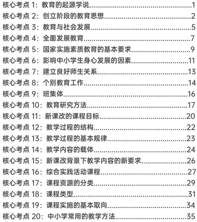 匹配考綱要求,精選50個(gè)核心考點(diǎn):銘師組團(tuán)精研,基于考綱收錄《教育學(xué)與教學(xué)法基礎(chǔ)知識(shí)》《教育心理學(xué)與德育工作基礎(chǔ)知識(shí)》核心考點(diǎn),重點(diǎn)突出,幫助考生學(xué)習(xí)記憶。