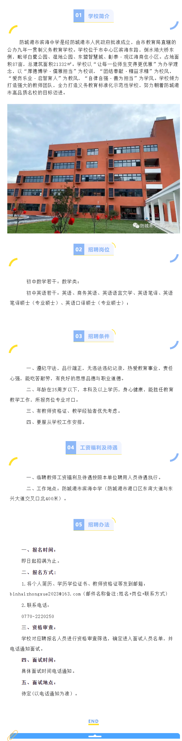 2025年防城港市濱海中學(xué)秋季學(xué)期臨聘教師若干人