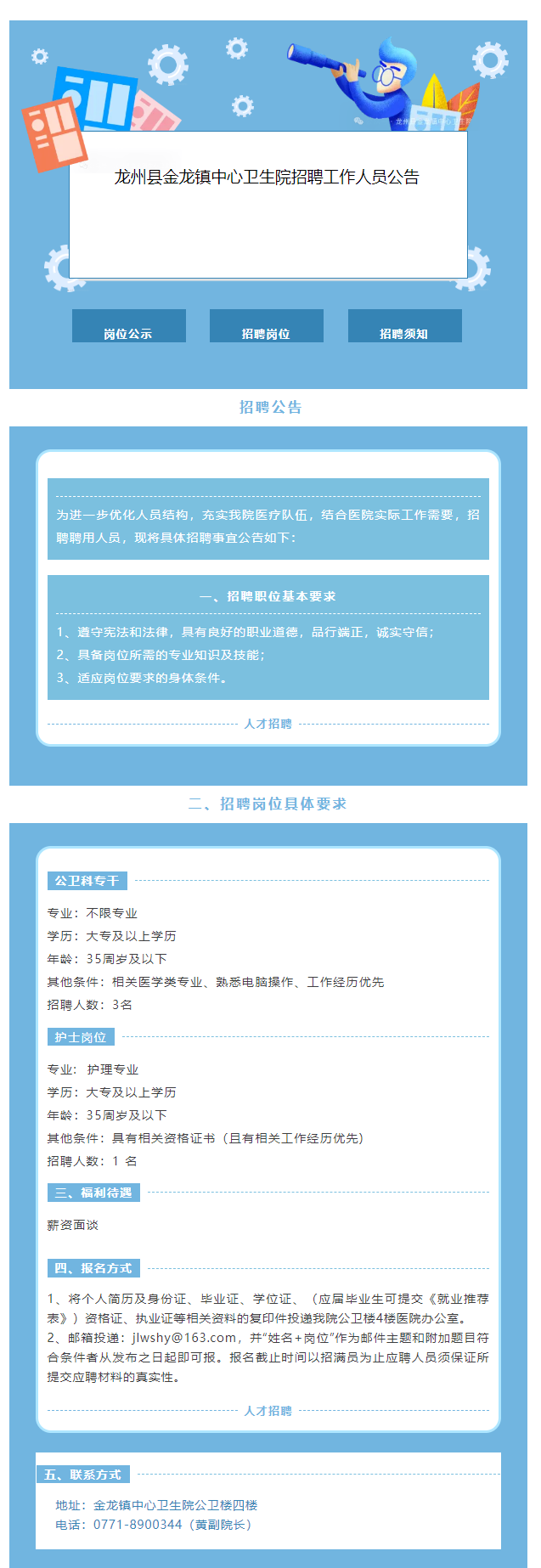 原文標(biāo)題:龍州縣金龍鎮(zhèn)中心衛(wèi)生院招聘工作人員公告