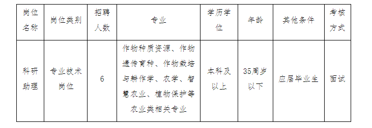 我所設(shè)有4個科室、1個種質(zhì)庫、1個中心和10個研究團(tuán)隊。根據(jù)工作需要,現(xiàn)面向社會公開招聘編制外工作人員6名。現(xiàn)將有關(guān)事項公告如下: