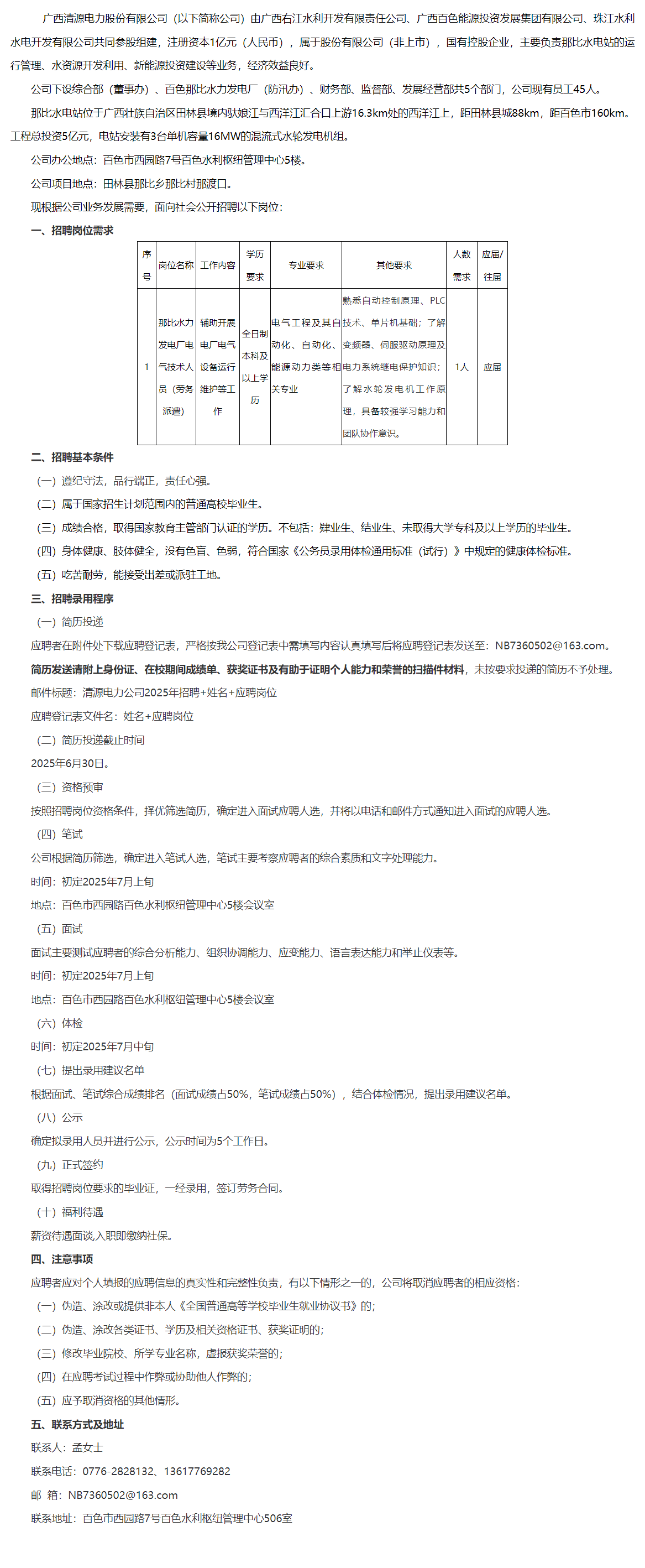 2025年廣西清源電力股份有限公司勞務(wù)派遣人員招聘公告