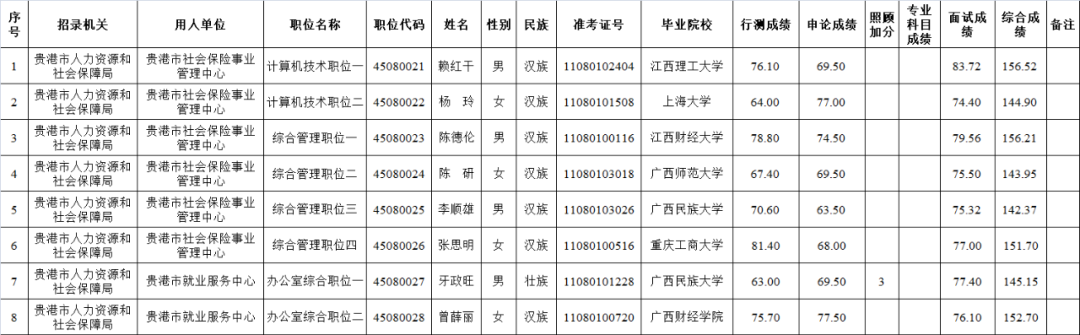 6.6 貴港市人力資源和社會保障局2025年度考試錄用公務(wù)員擬錄用人員名單