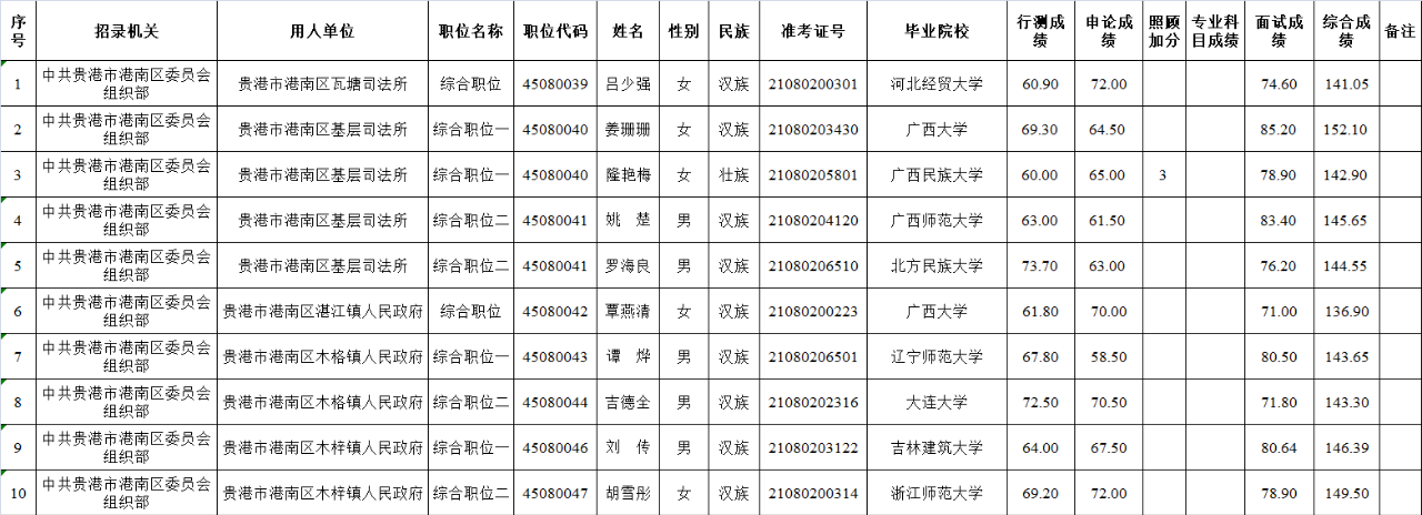 6.6 貴港市港南區(qū)2025年度考試錄用公務(wù)員擬錄用人員名單(一)