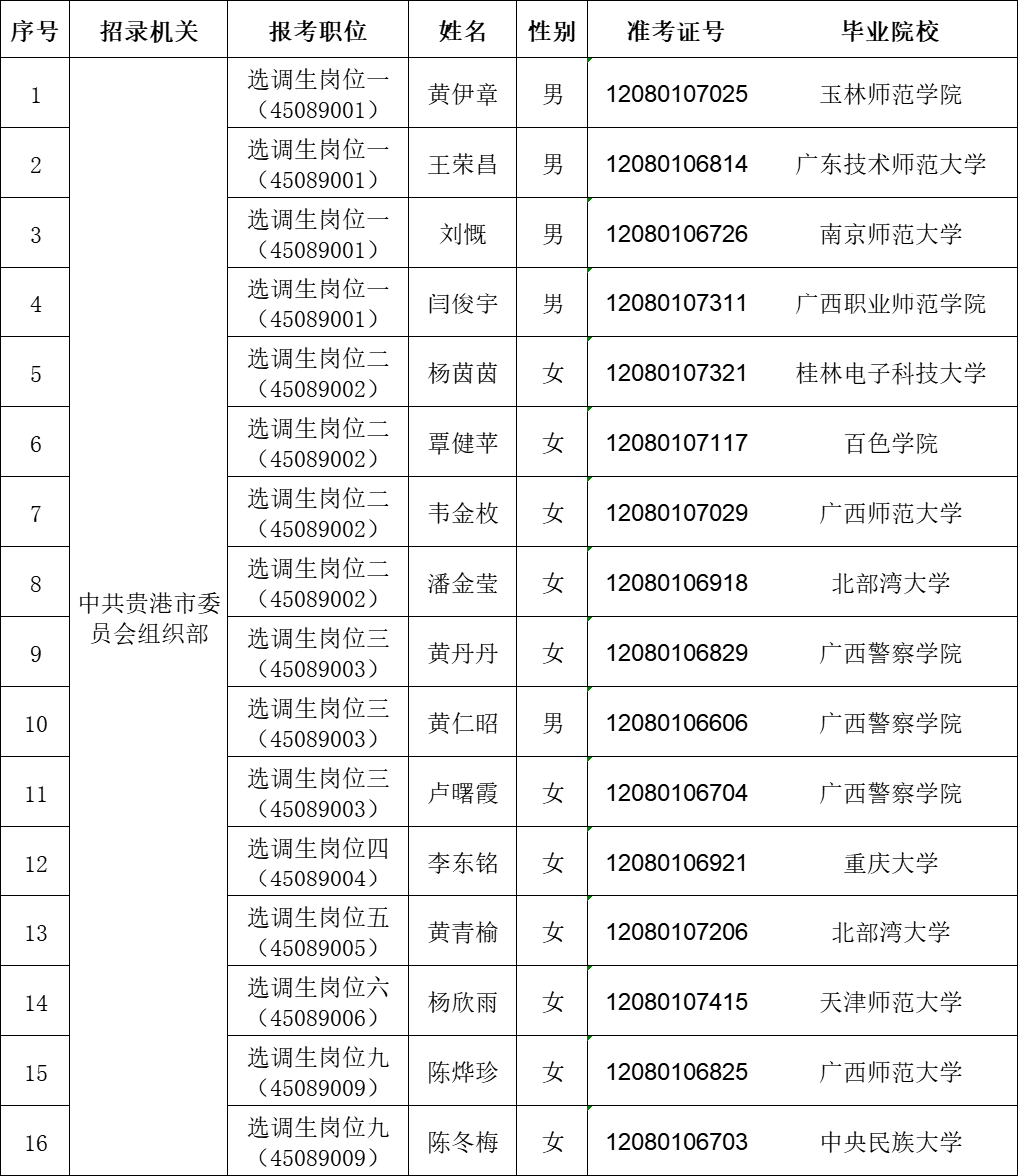 6.17 貴港市2025年從應(yīng)屆優(yōu)秀大學畢業(yè)生中招錄選調(diào)生擬錄用人員公示