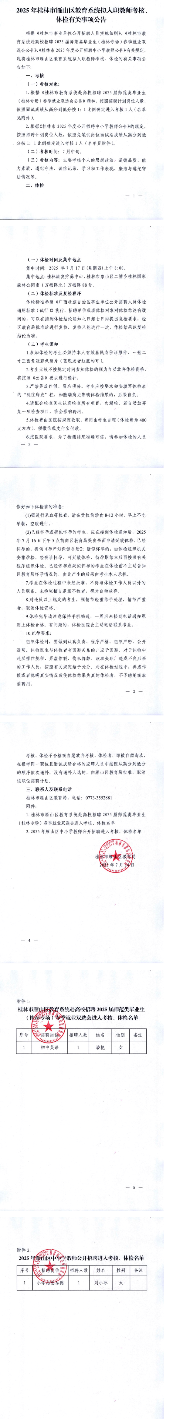 2025年桂林市雁山區(qū)教育系統(tǒng)擬入職教師考核、體檢有關(guān)事項(xiàng)公告