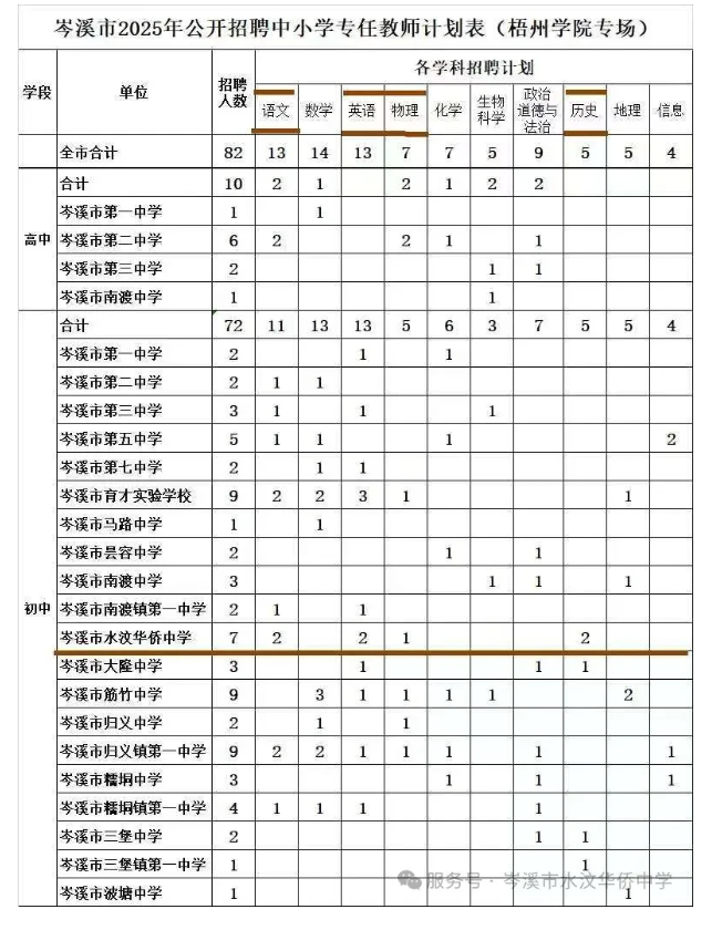 2025年岑溪市水汶華僑中學(xué)招聘7人