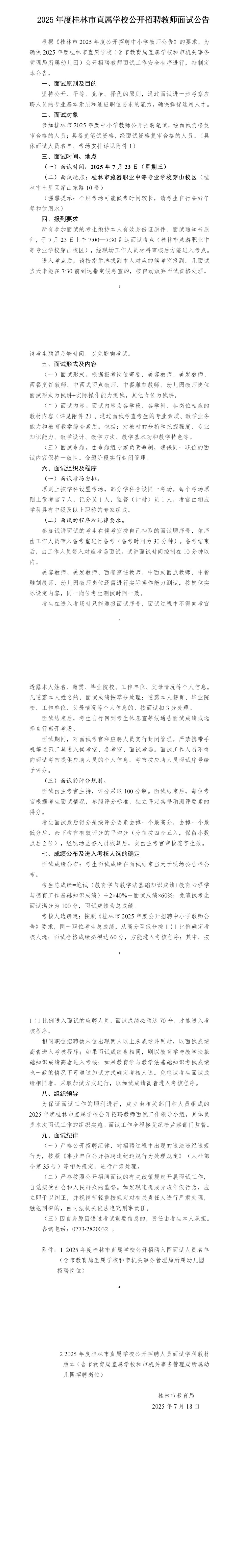 2025年度桂林市直屬學(xué)校公開招聘教師面試公告