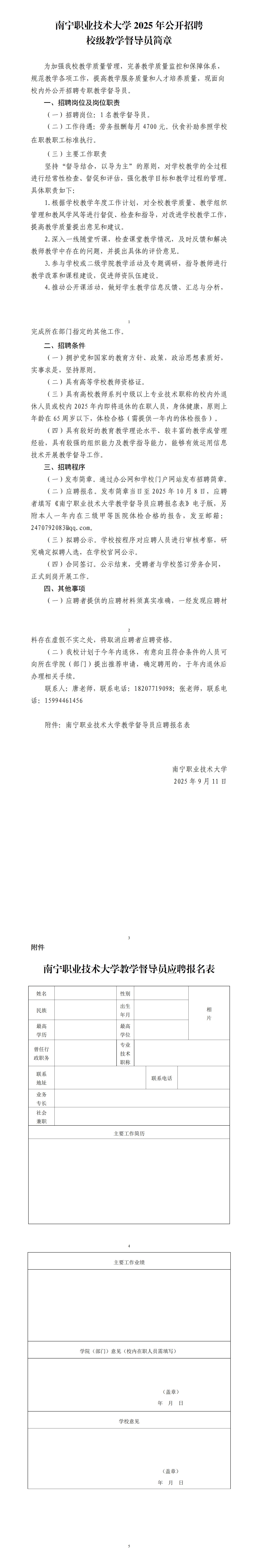2025年南寧職業(yè)技術大學公開招聘校級教學督導員簡章
