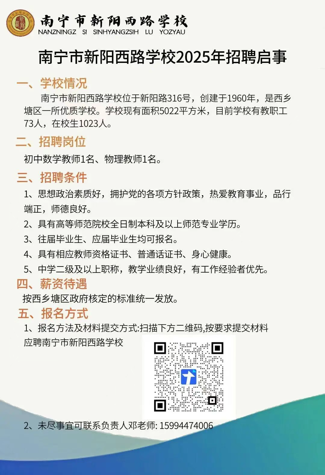 2025年南寧市新陽西路學校2025年招聘2人