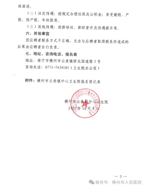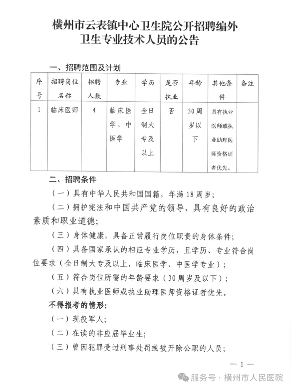 2025年橫州市云表鎮(zhèn)中心衛(wèi)生院公開招聘編外衛(wèi)生專業(yè)技術(shù)人員的公告