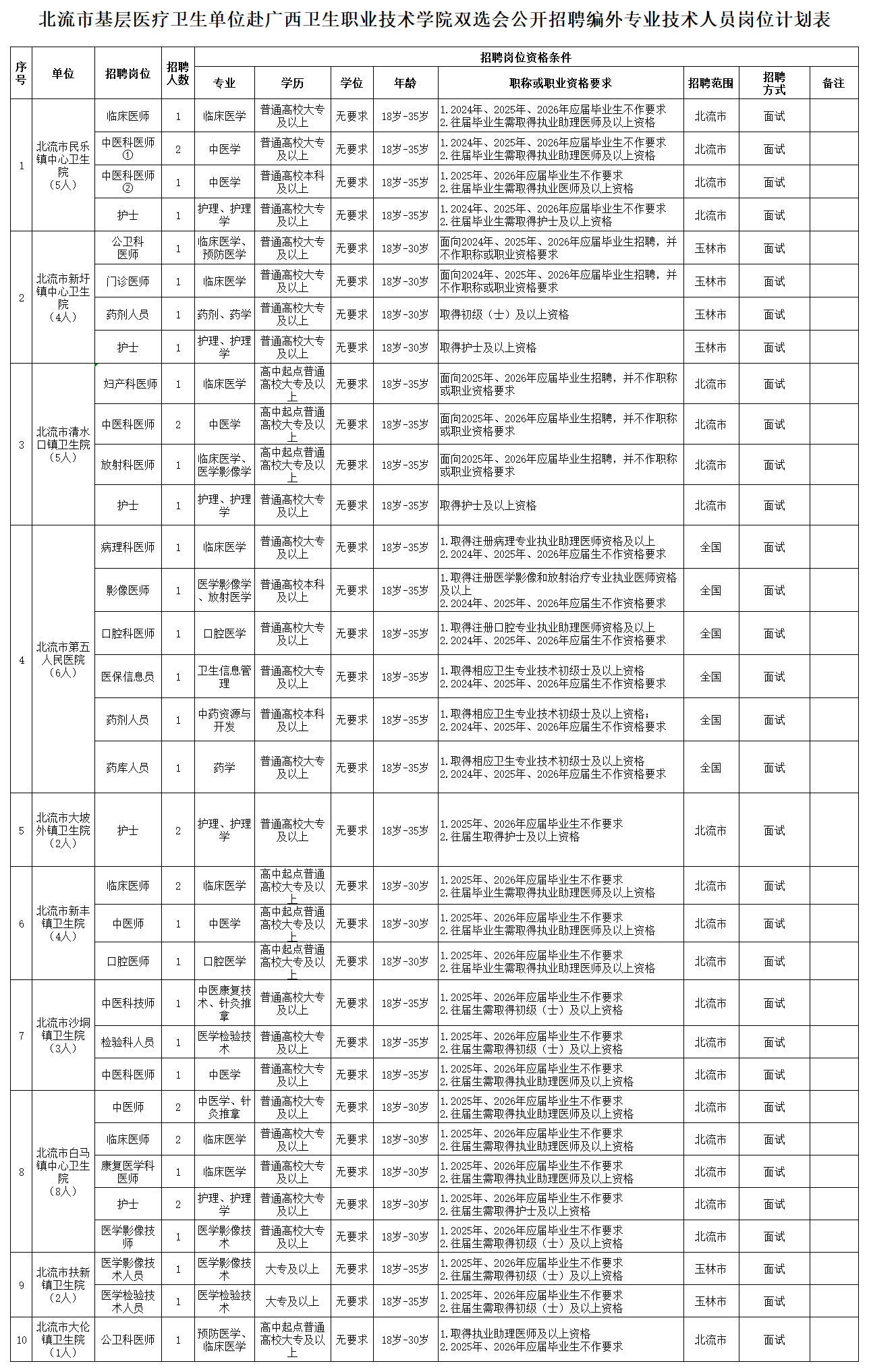 2025年北流市基層醫(yī)療衛(wèi)生單位赴廣西衛(wèi)生職業(yè)技術(shù)學院雙選會公開招聘編外專業(yè)技術(shù)人員公告