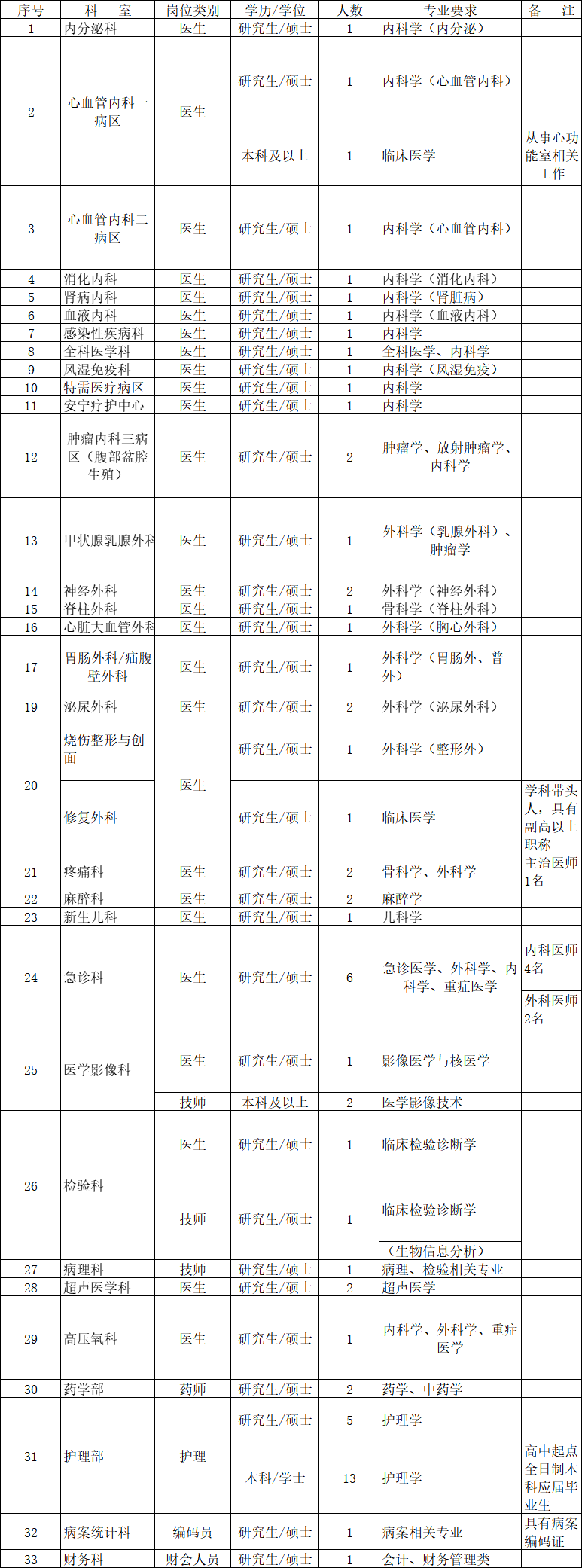 醫(yī)院長期招聘各臨床醫(yī)技科室博士等高層次人才,人數(shù)不限。