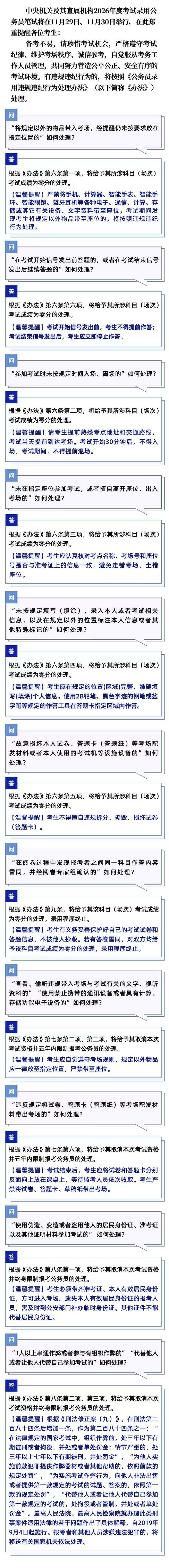 中央機(jī)關(guān)及其直屬機(jī)構(gòu)2026年度考試錄用公務(wù)員筆試有關(guān)違規(guī)違紀(jì)行為處理溫馨提醒