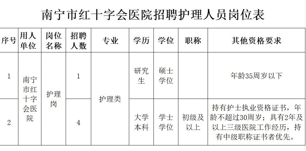 2025年南寧市紅十字會(huì)醫(yī)院招聘護(hù)理人員