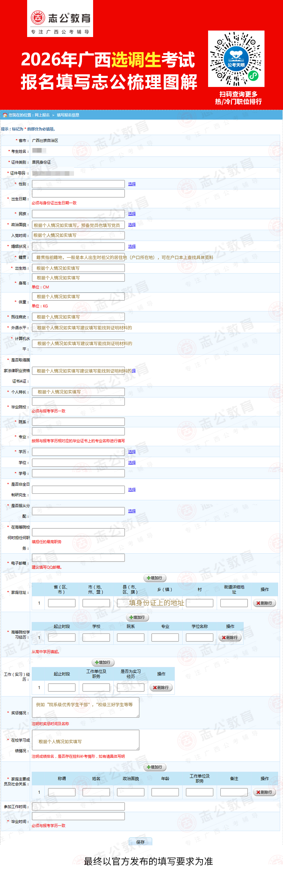 2026年廣西選調(diào)生報(bào)名信息填寫(xiě)參考