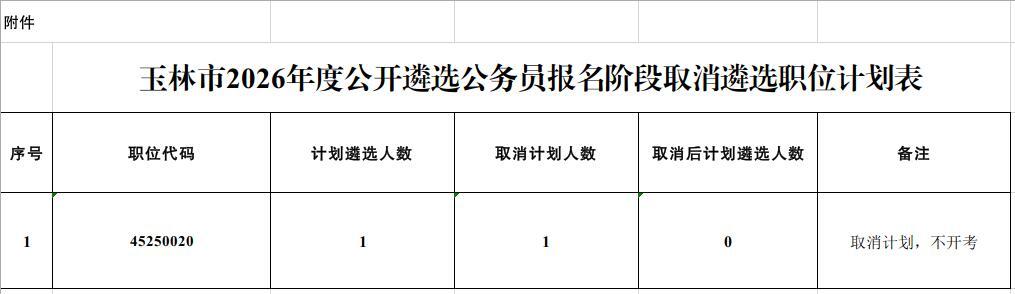 原文標(biāo)題:關(guān)于玉林市2026年度公開遴選公務(wù)員報名階段取消職位計劃的通告