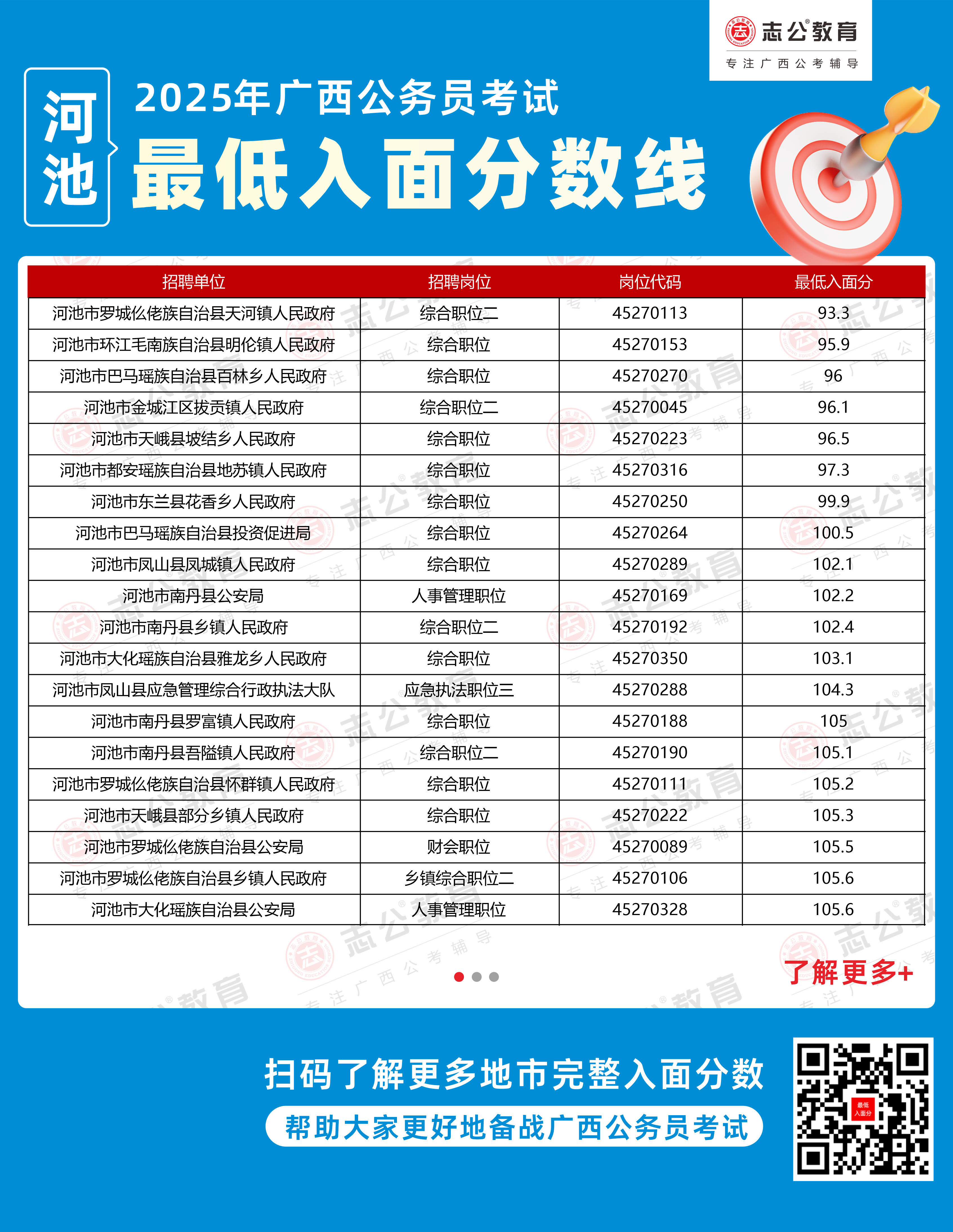 (點擊下載更多2025年河池公務(wù)員最低入面分?jǐn)?shù),數(shù)據(jù)整理自官方發(fā)布的面試資格審查公告)