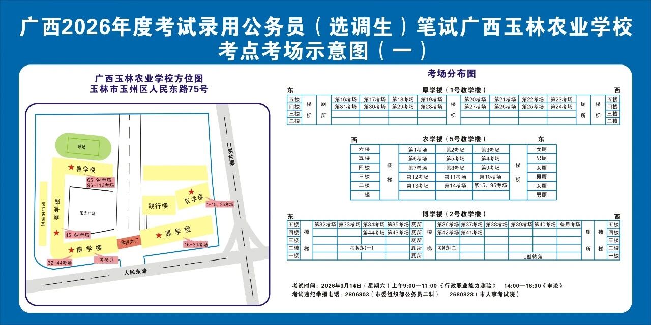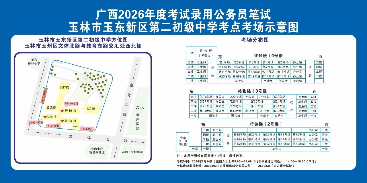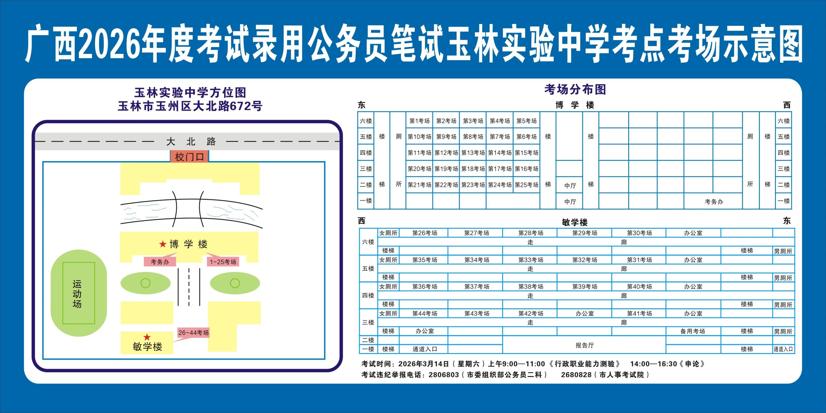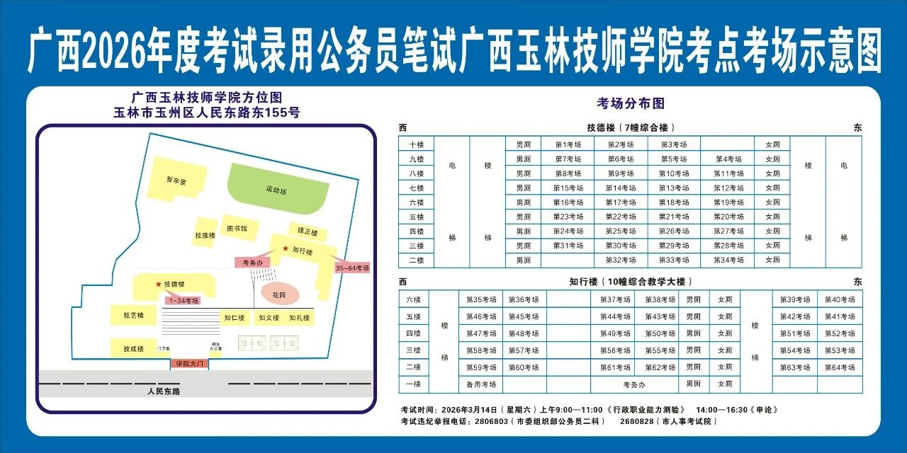 廣西2026年度考試錄用公務員(選調(diào)生)筆試將于3月14日舉行,為進一步提升玉林考區(qū)服務保障質(zhì)量,現(xiàn)就有關注意事項提示如下,請廣大考生做好應試準備工作,準確掌握考試時間、考點地址及相關注意事項。