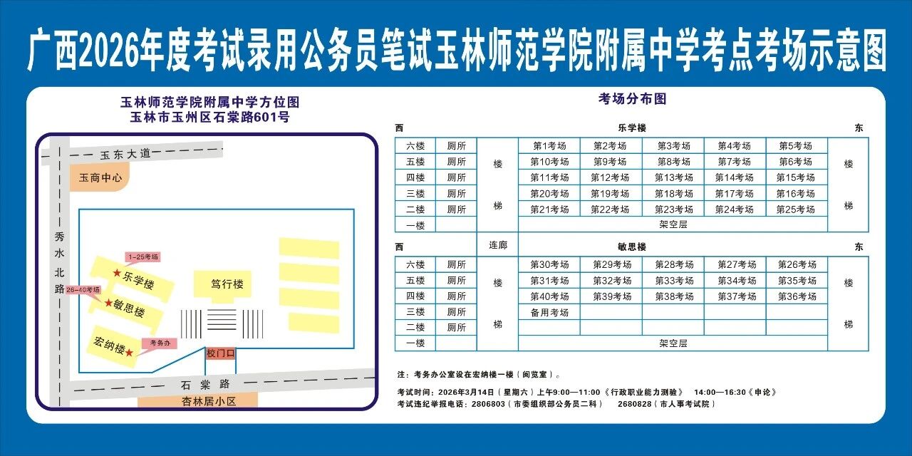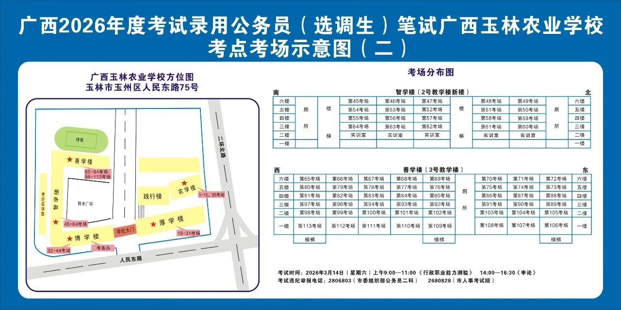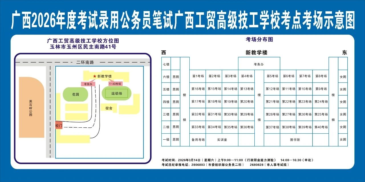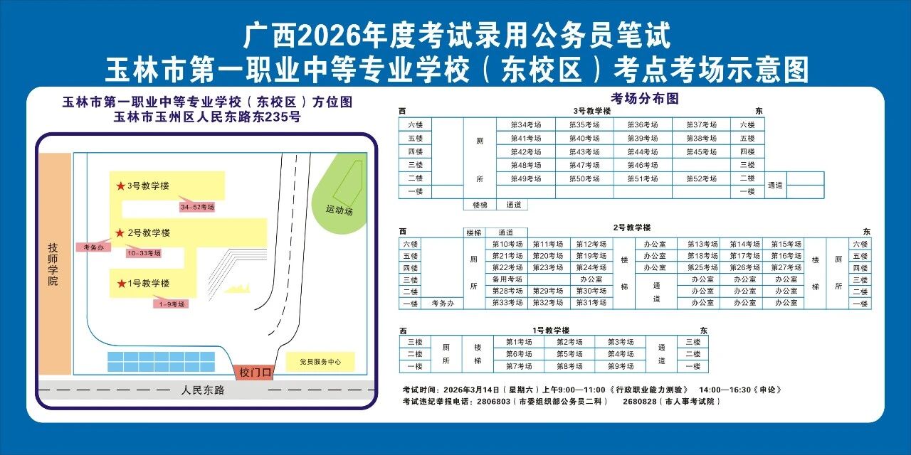 廣西2026年度考試錄用公務員(選調(diào)生)筆試將于3月14日舉行,為進一步提升玉林考區(qū)服務保障質(zhì)量,現(xiàn)就有關注意事項提示如下,請廣大考生做好應試準備工作,準確掌握考試時間、考點地址及相關注意事項。