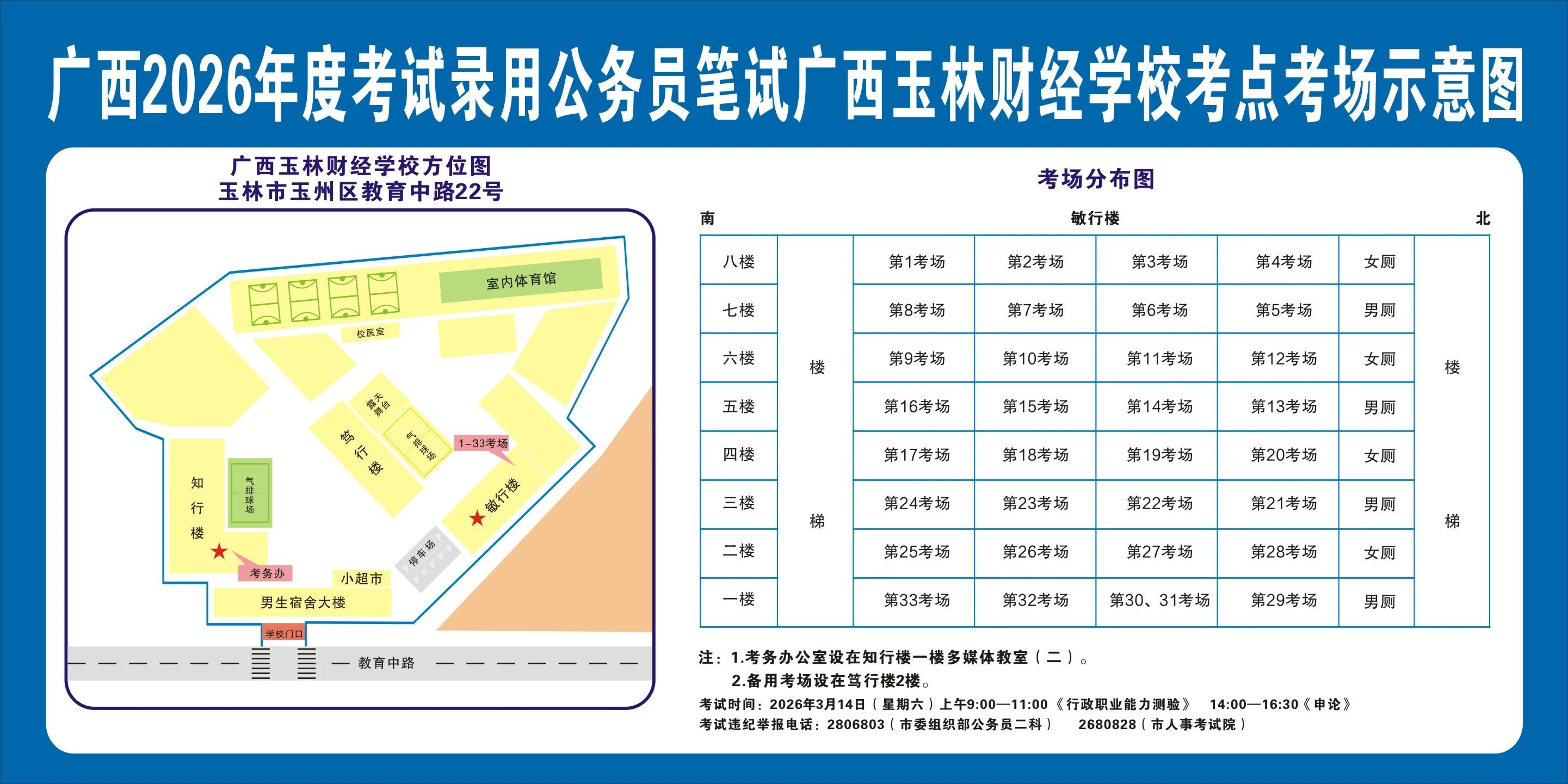 ⑤考點名稱:廣西玉林財經(jīng)學校(途經(jīng)公交線:2路、3路、11路;上下車站點:市黨校)