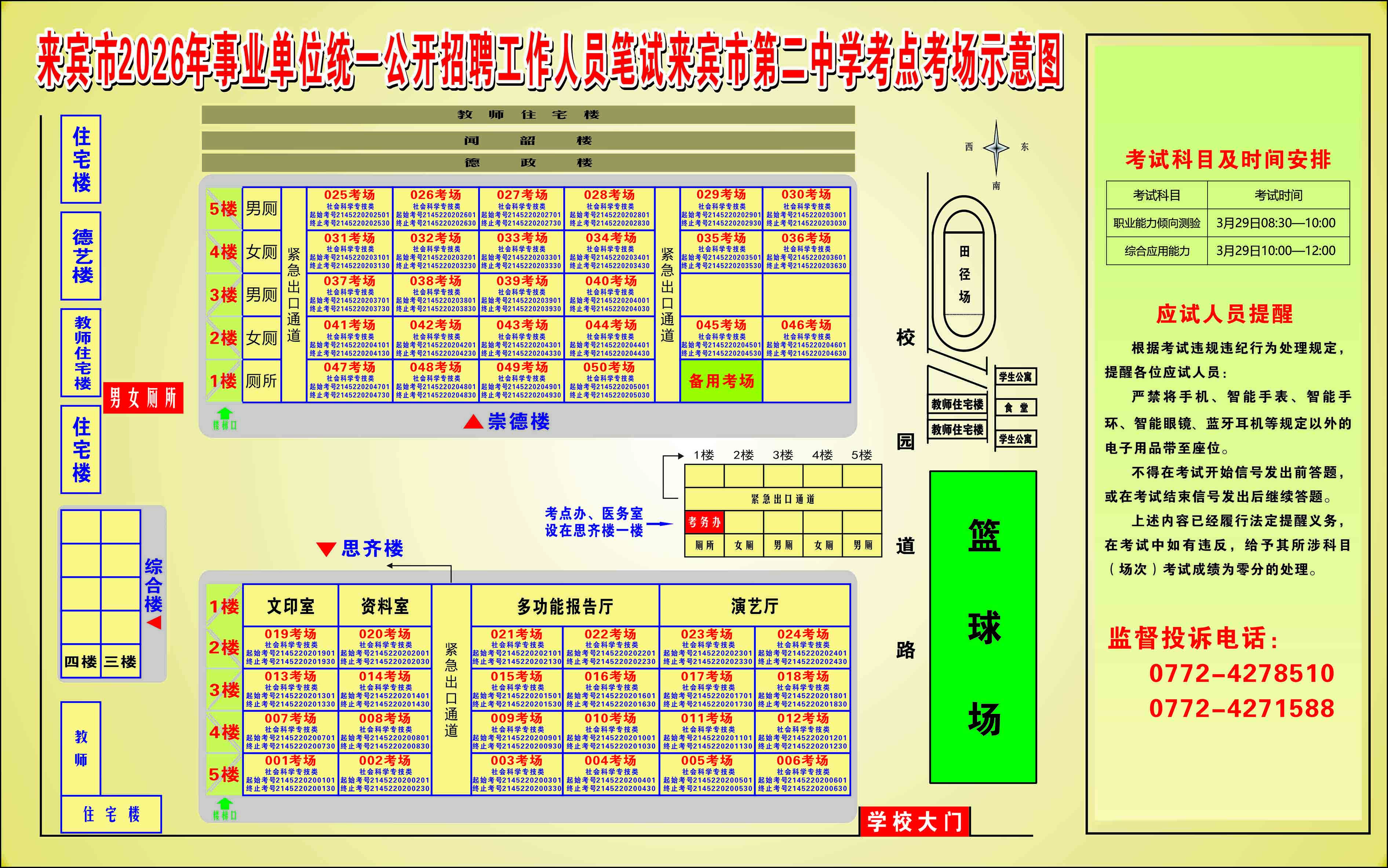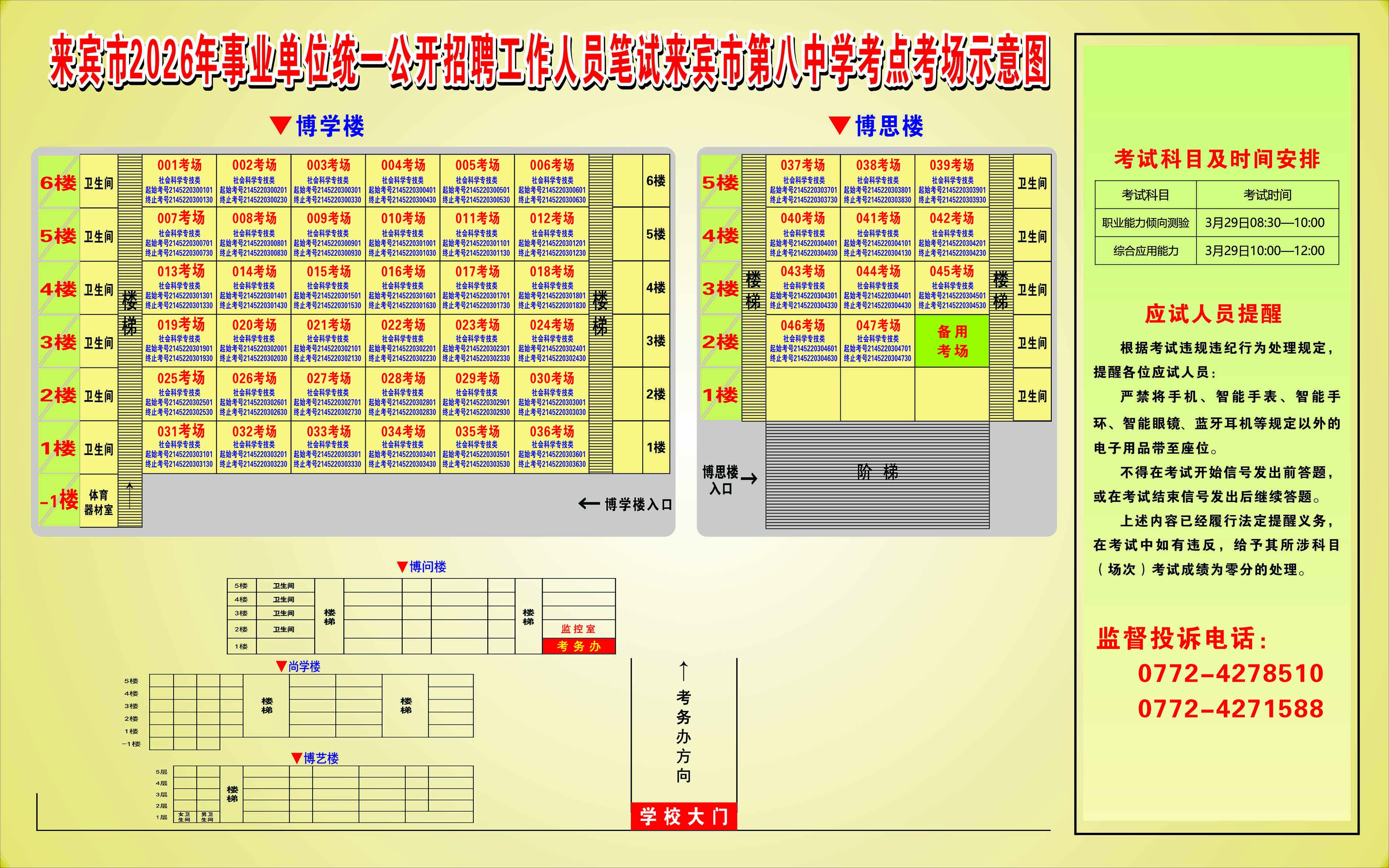 3.3月29日社會(huì)科學(xué)專技類(B類),來(lái)賓市第二中學(xué)考點(diǎn)(來(lái)賓市興賓區(qū)北四路62號(hào))。