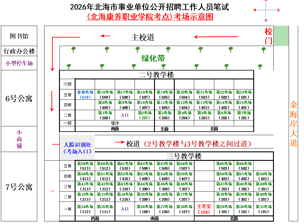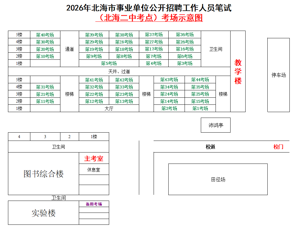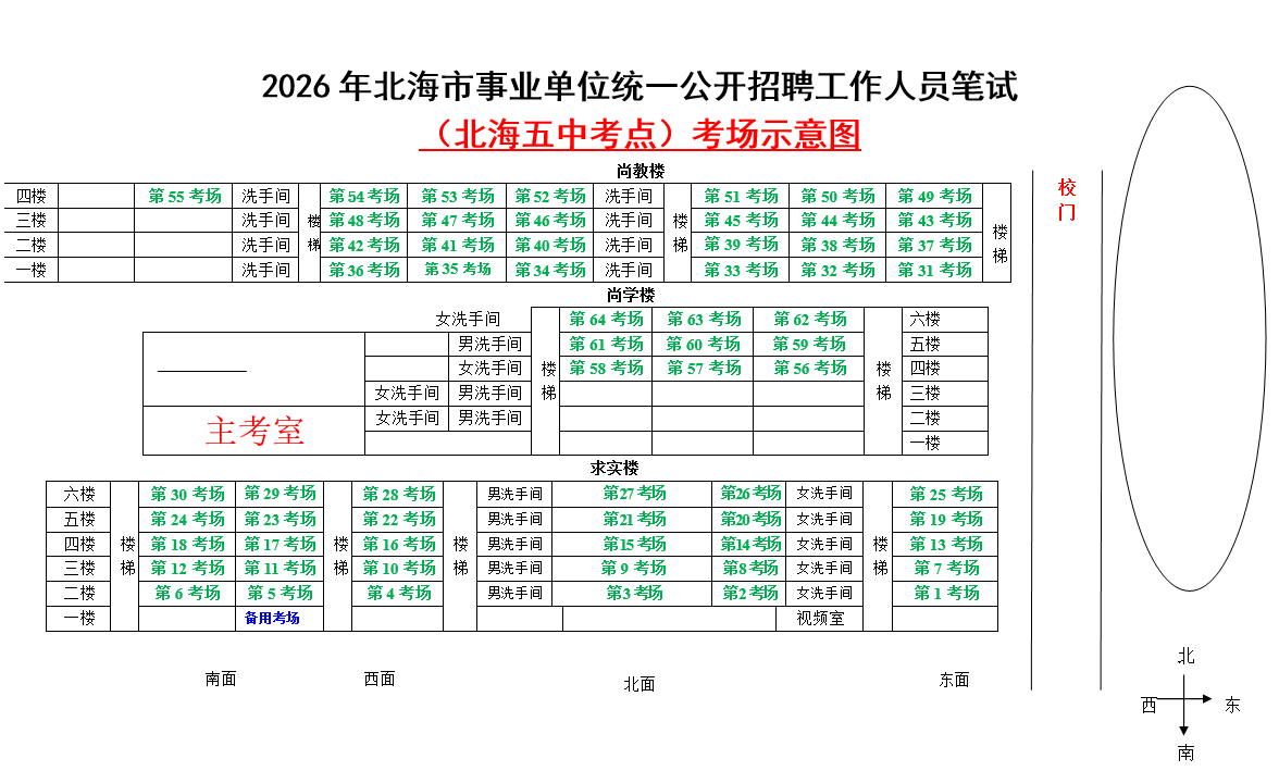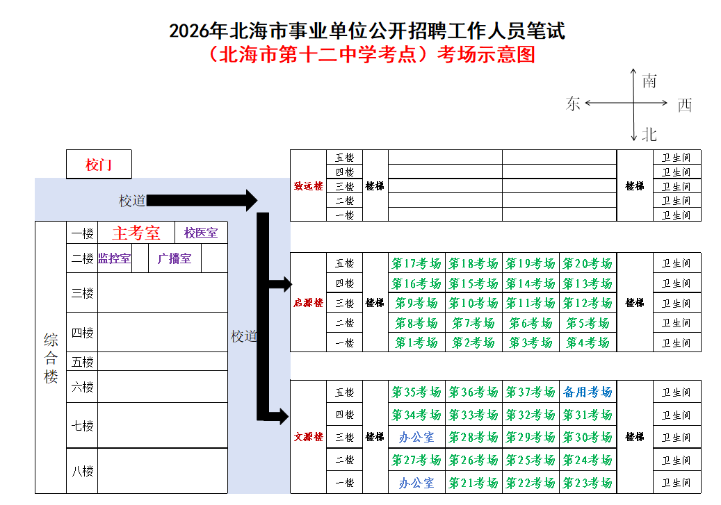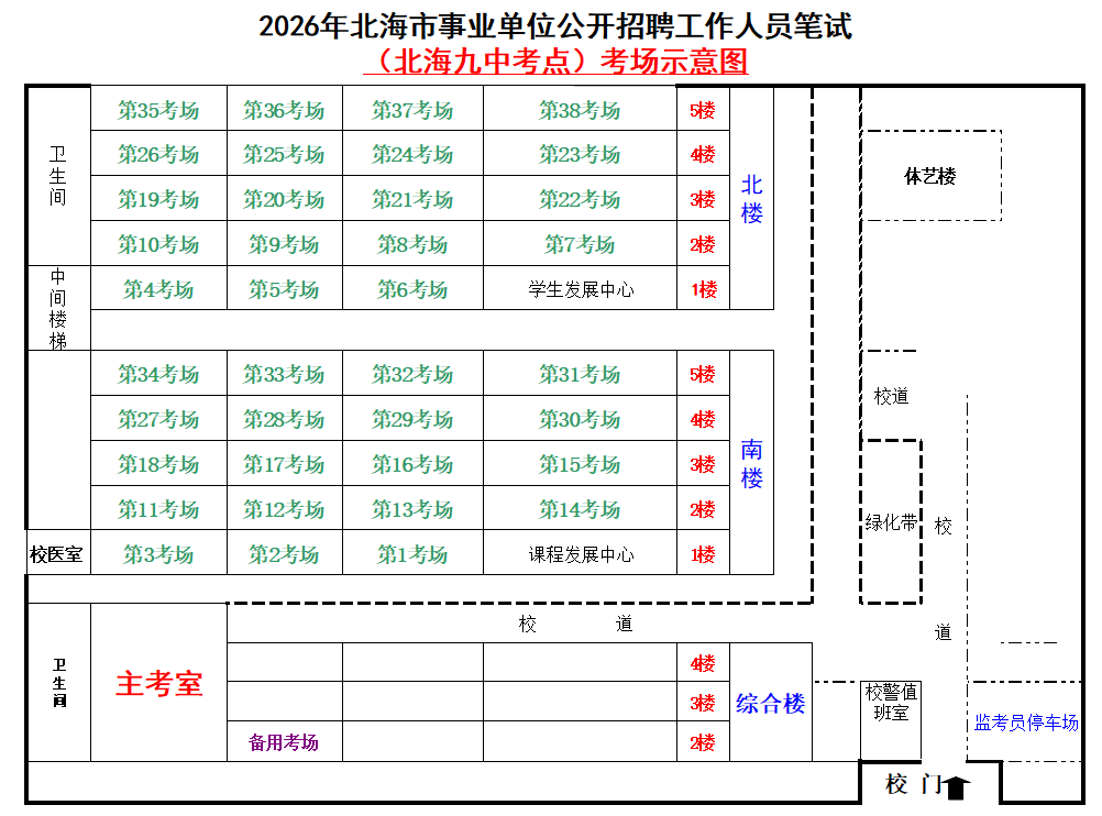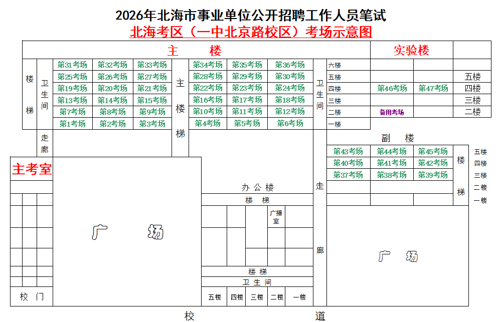 (一)3月28日進(jìn)行綜合管理類(lèi)(A類(lèi))考試,北海市共設(shè)一個(gè)考點(diǎn),考點(diǎn)考場(chǎng)布置為: