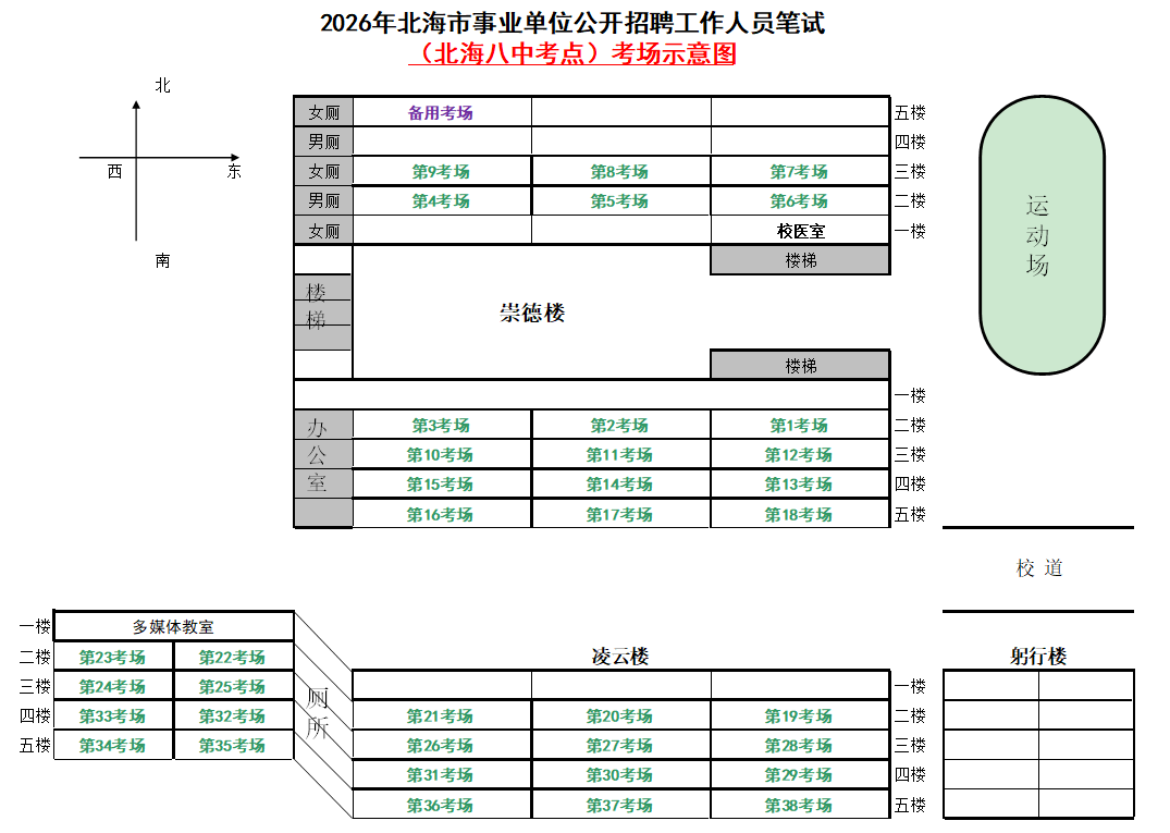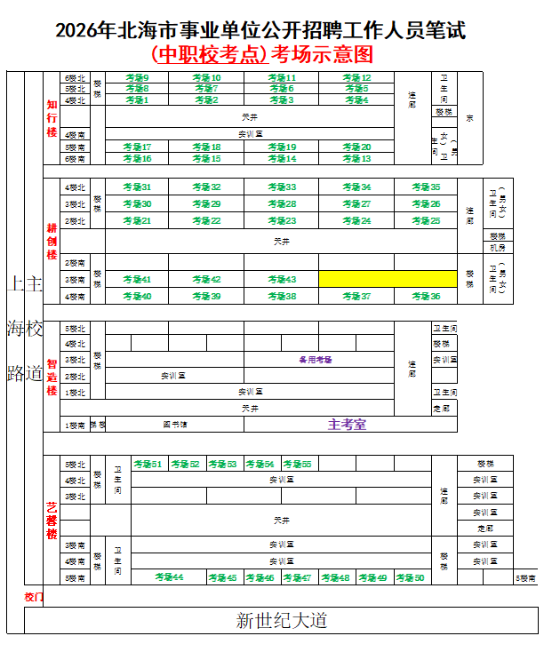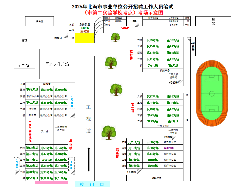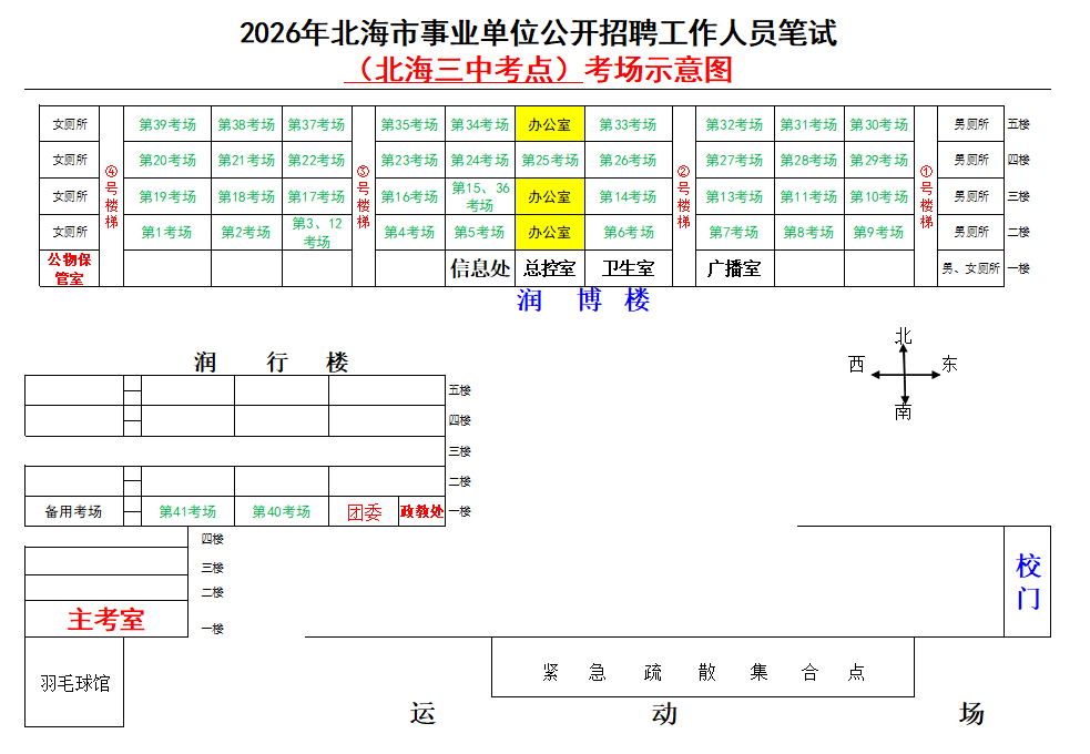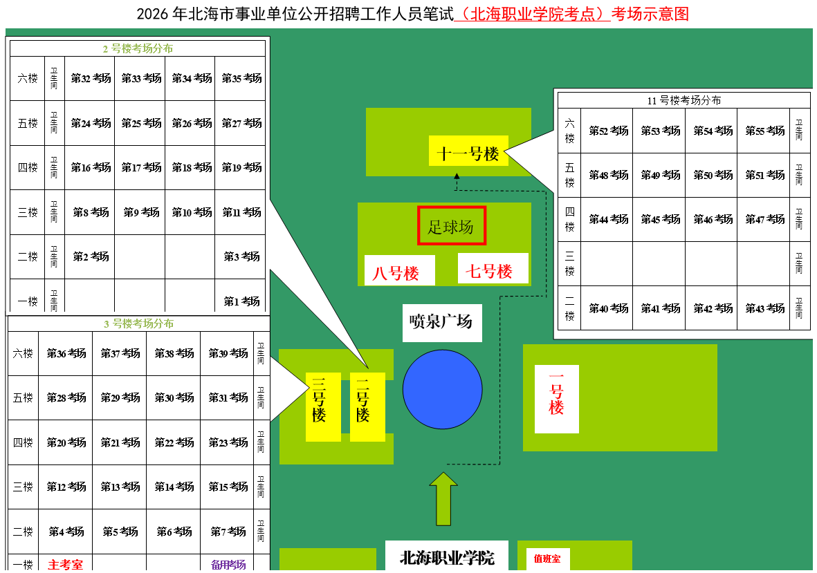 (一)3月28日進(jìn)行綜合管理類(lèi)(A類(lèi))考試,北海市共設(shè)一個(gè)考點(diǎn),考點(diǎn)考場(chǎng)布置為: