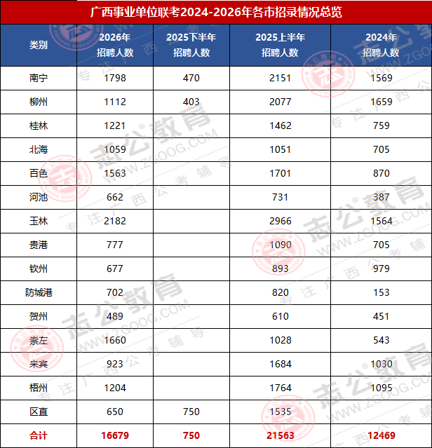 2026廣西事考招錄16679人,較2025上半年廣西事業(yè)單位招錄縮招了4884人;招錄波動大、但是機會集中,醫(yī)療E類、綜合A 類為招錄主力;廣西區(qū)直、南寧、桂林等崗位競爭激烈,是應(yīng)屆生與社會考生圓夢重要賽道。